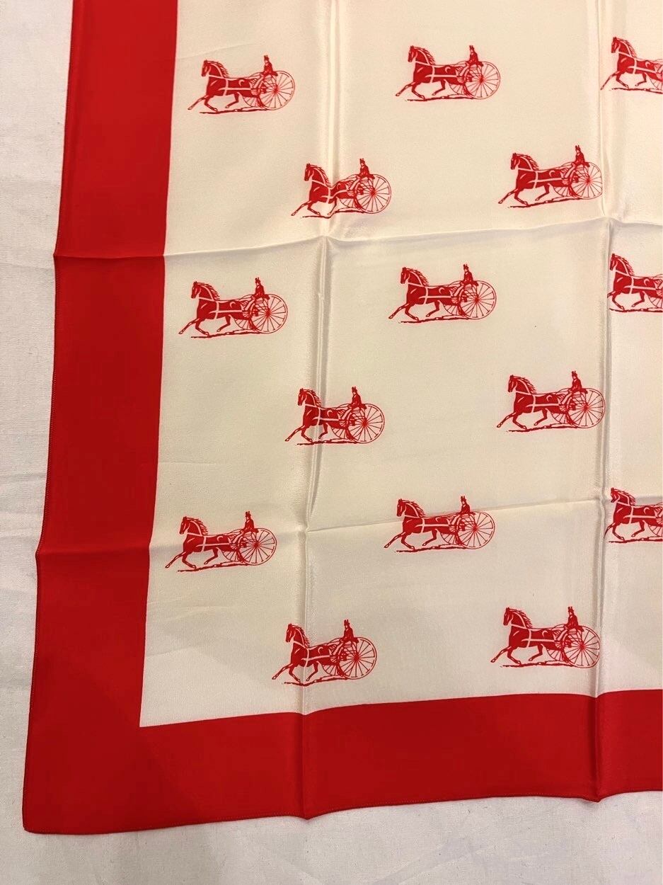 CELINE "Carriages" Red × White Scarf with Box -Dead Stock!-