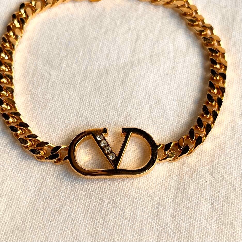 ゴールドのVロゴに4粒のラインストーンが可憐なVALENTINOのブレスレット!