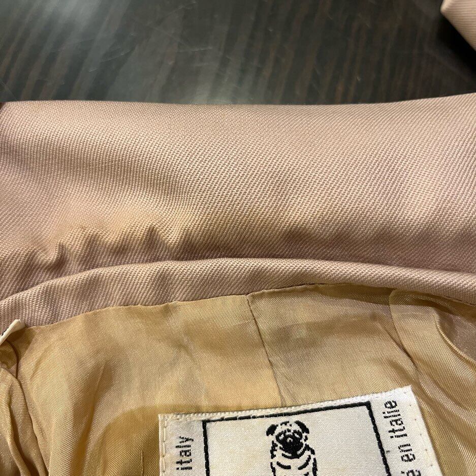 *上下共に、裏地含め、複数個所うすしみ(写真参照)がございます。全体的におおむねまずまずの状態です。