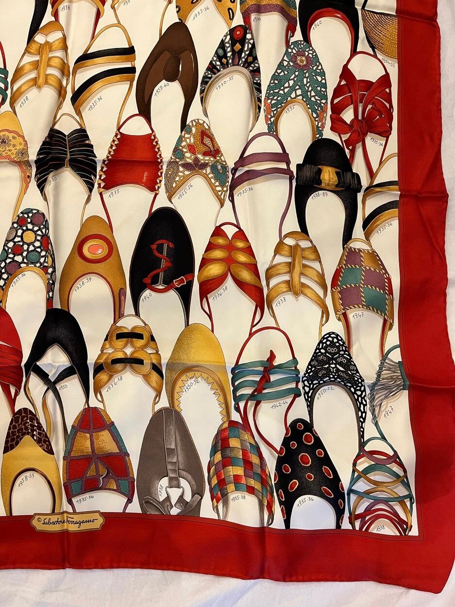 年代と共に描かれた靴のデザインがFERRAGAMOらしさあふれるスカーフ!