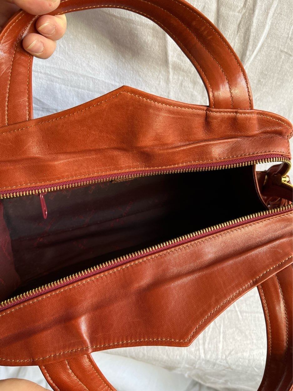 TRUSSARDI "Red Brown Leather" Unique Shape Hand Bag
