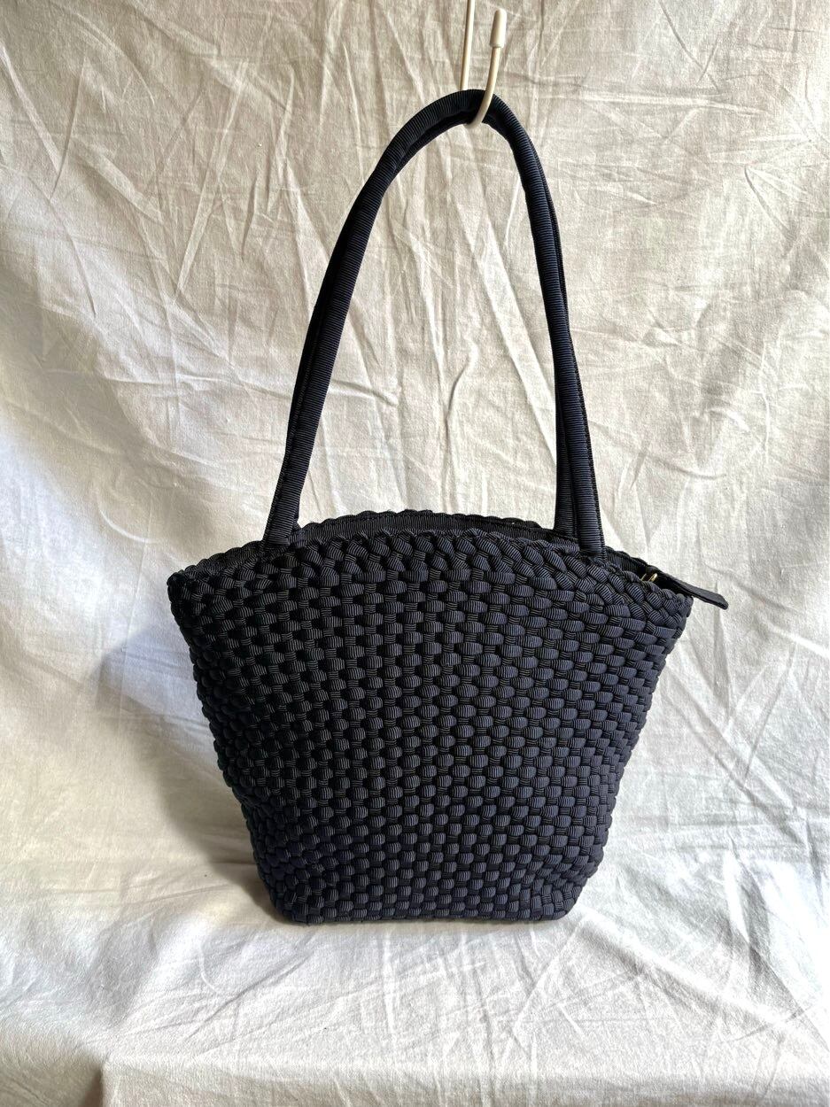 リボンのような光沢のある上質なファブリックの編み込みハンドバッグ, 大きめでトートバッグにもなる!
