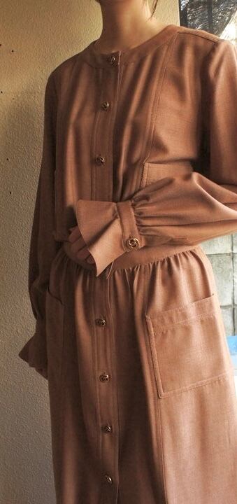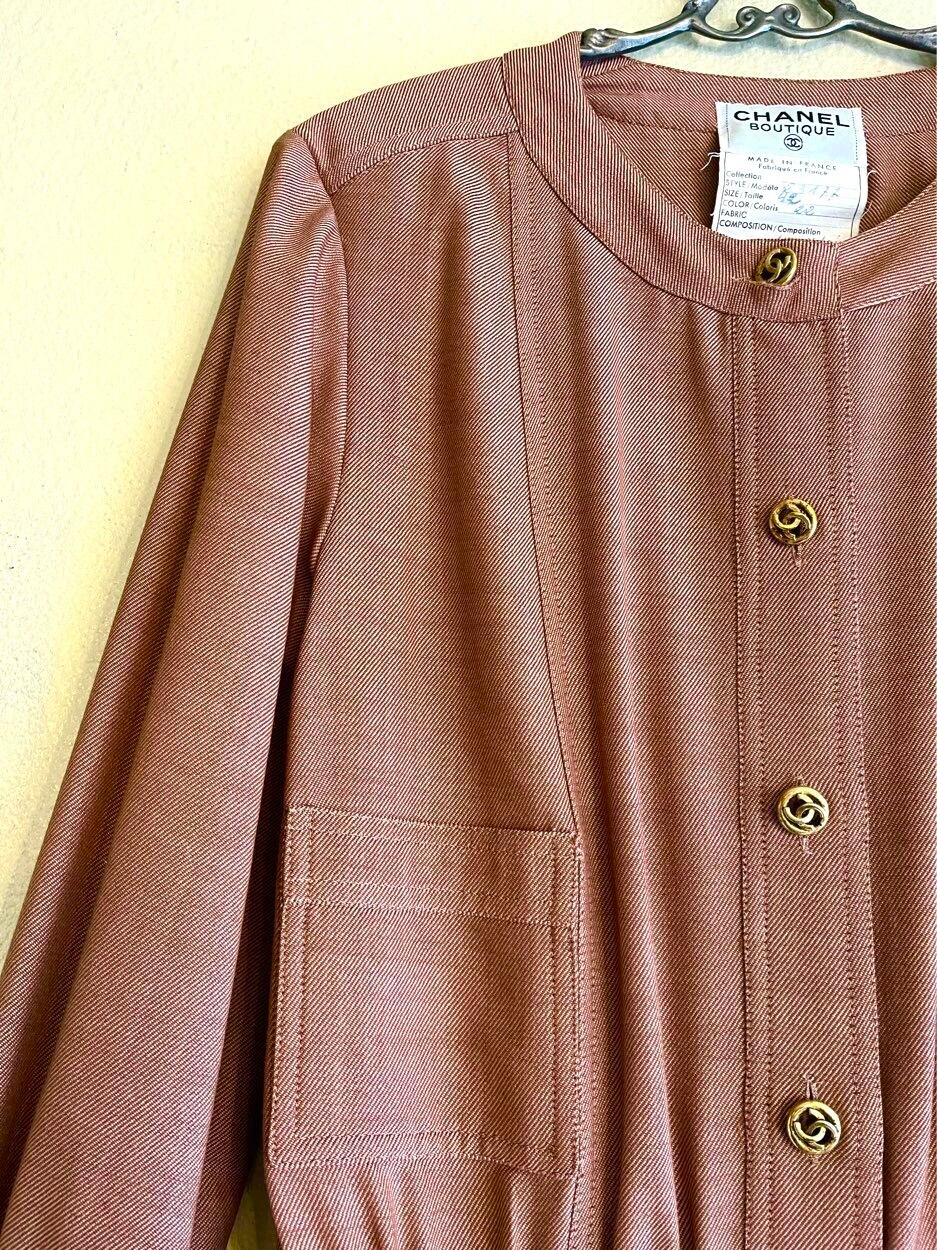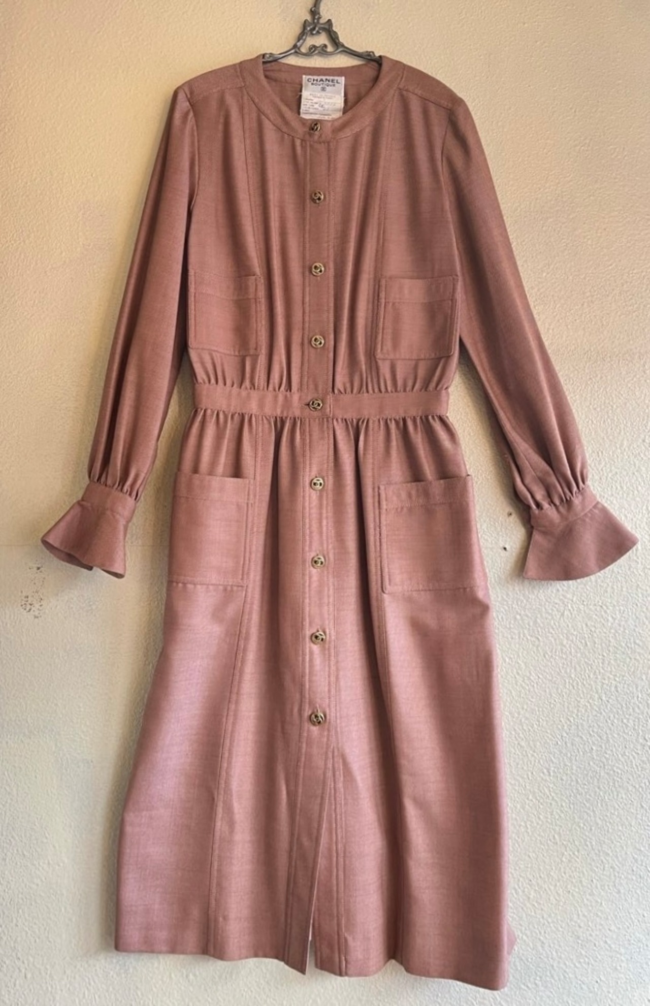 CHANEL "Terracotta Brown × CoCo Button" Wool Dress
