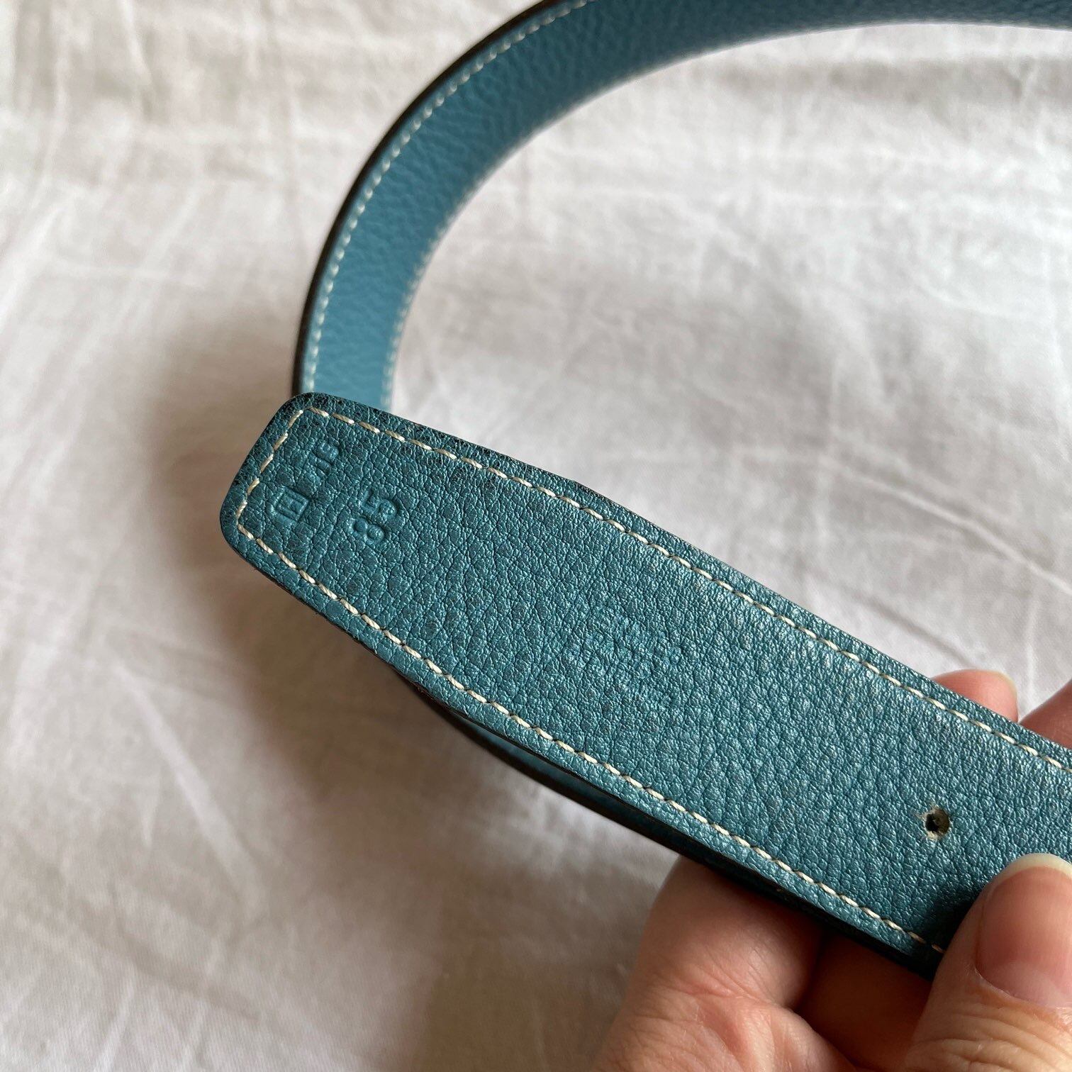 <men’s>HERMES "Turquoise Blue×Black Leather" "H Buckle" Reversible Belt(Long) #02