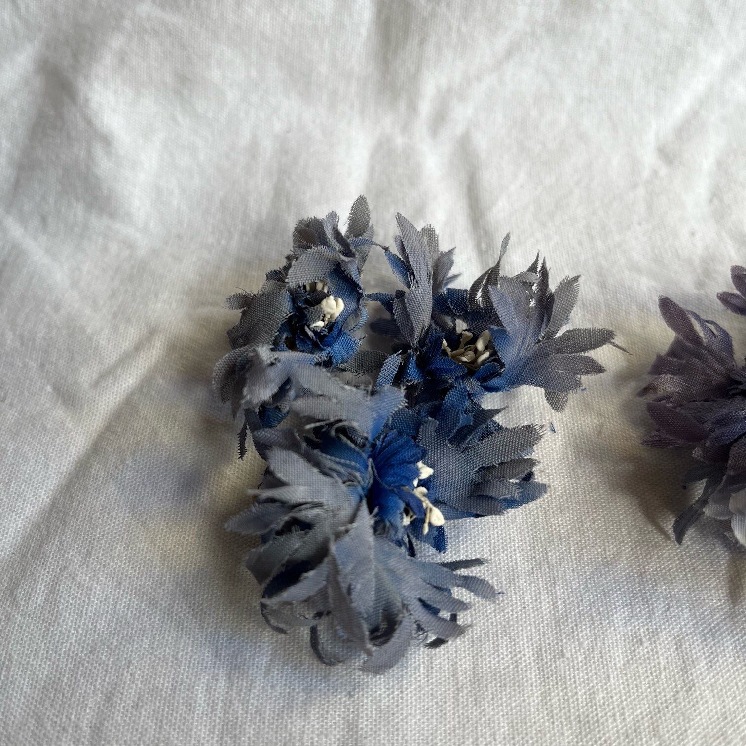 ≪Group 2≫France 1950~1960's Vintage "Blue Flower Motif" Ear Clips #02