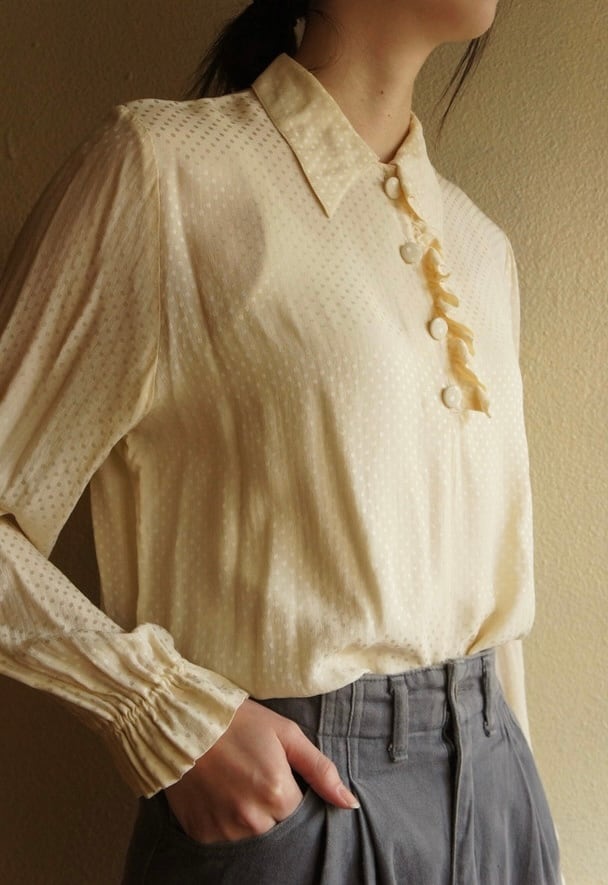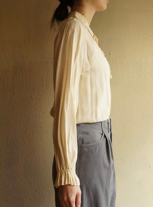 VALENTINO 1980's "Frill × Dot" Ivory Color Silk Blouse