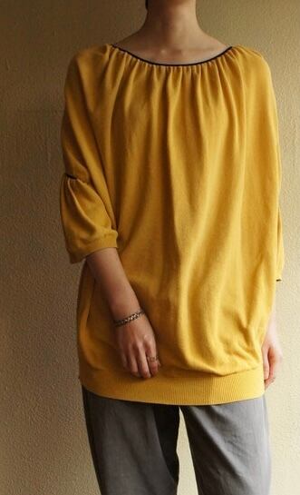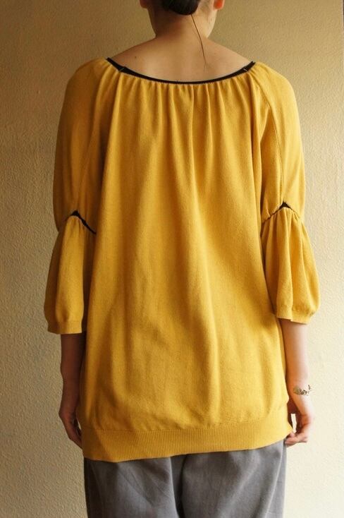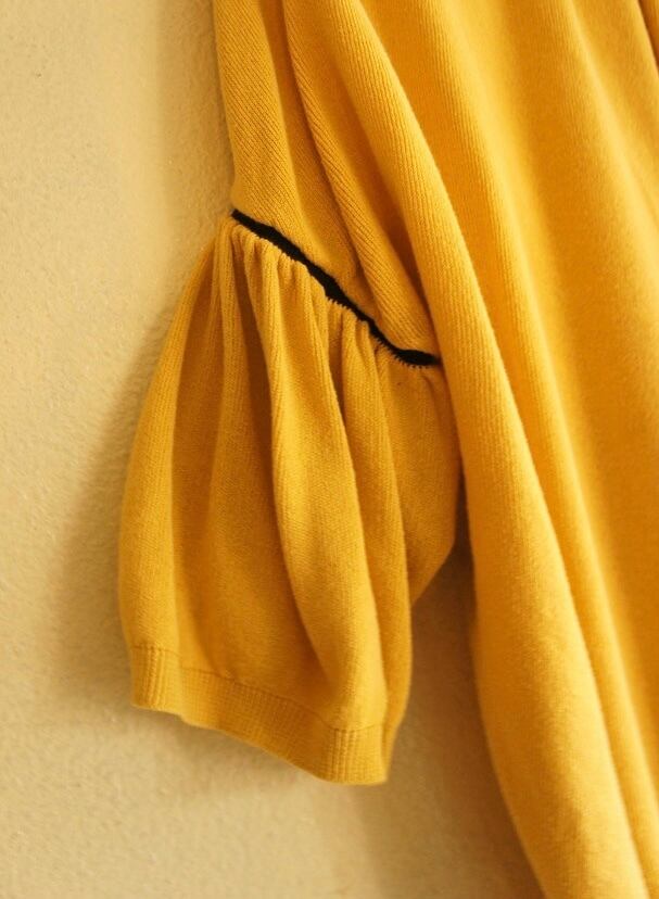 くすんだイエロー地にブラックのパイピングがエッジの効いたDRIES VAN NOTENのニットトップス!