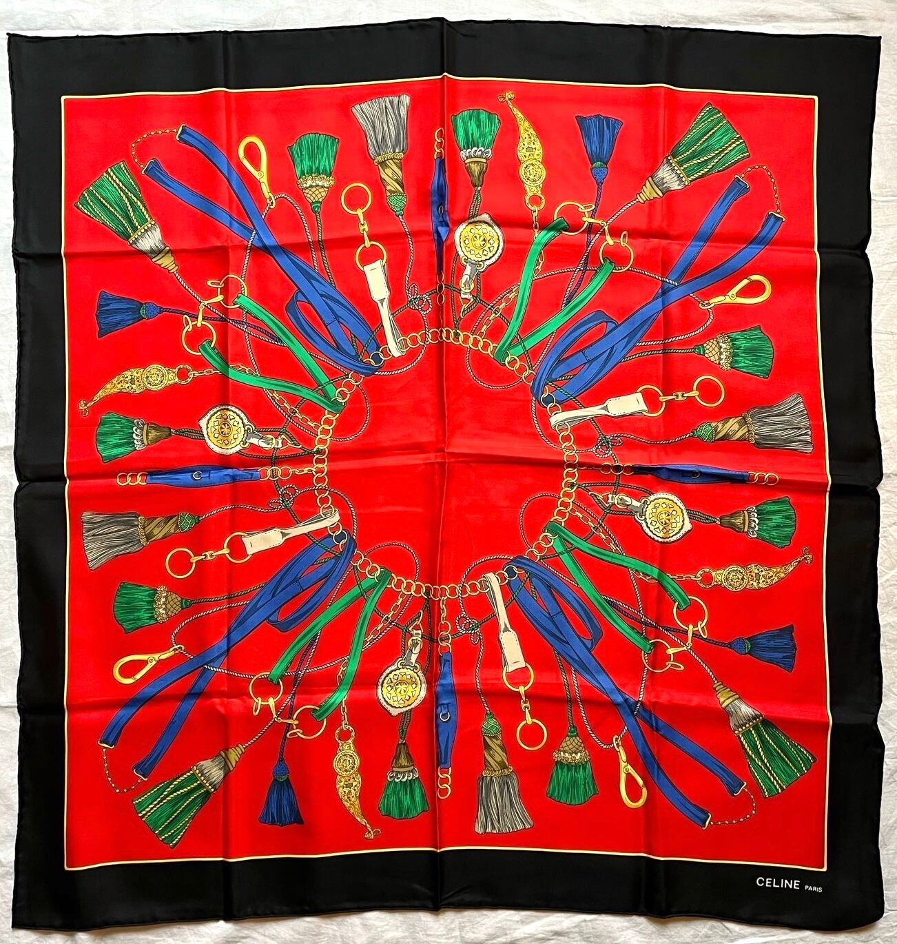 赤いベース時にブラックの締め色がメリハリのあるCELINEのスカーフ!
