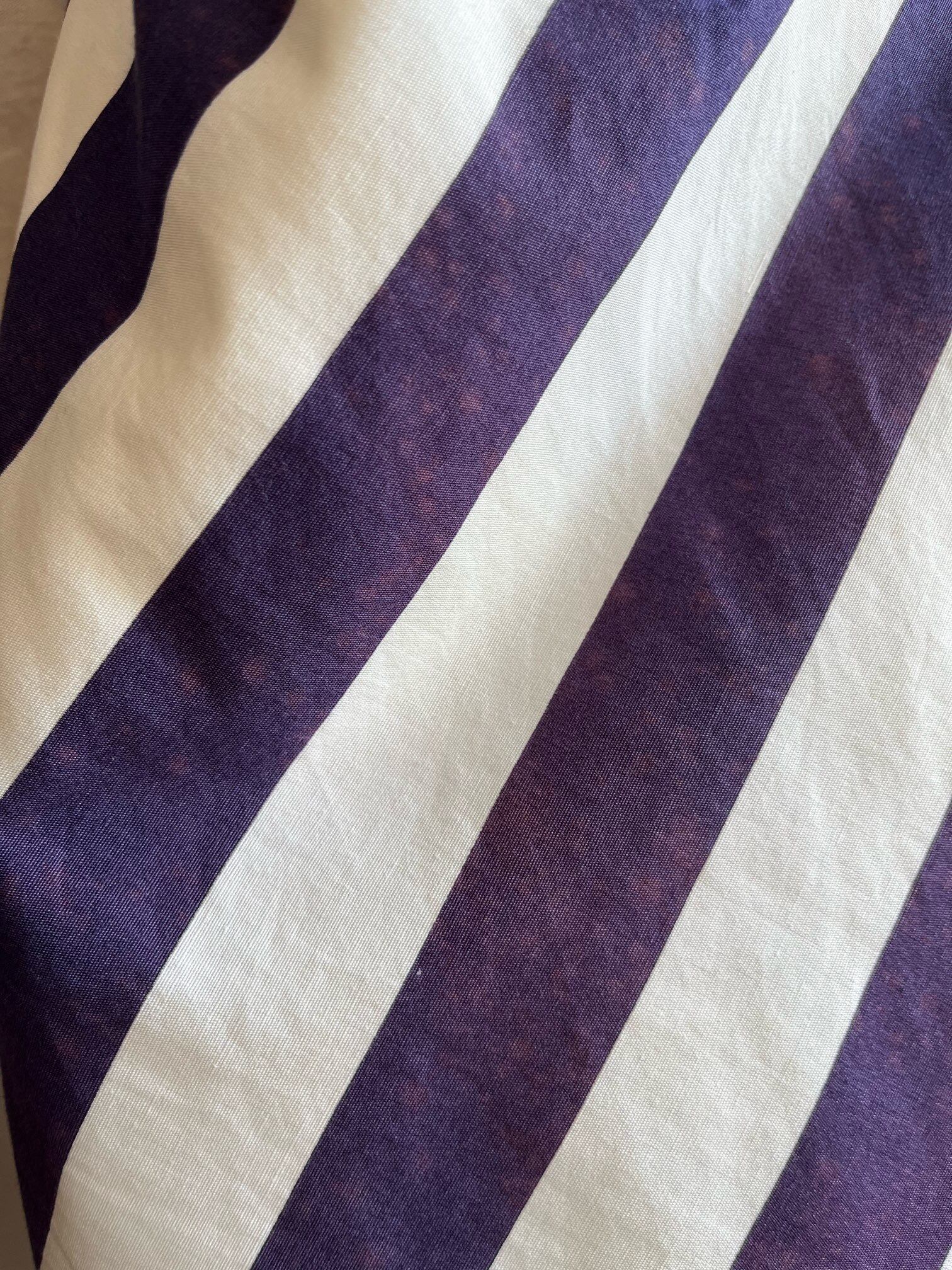 CHANEL "Off-White × Purple Striped" Short Sleeve Dress