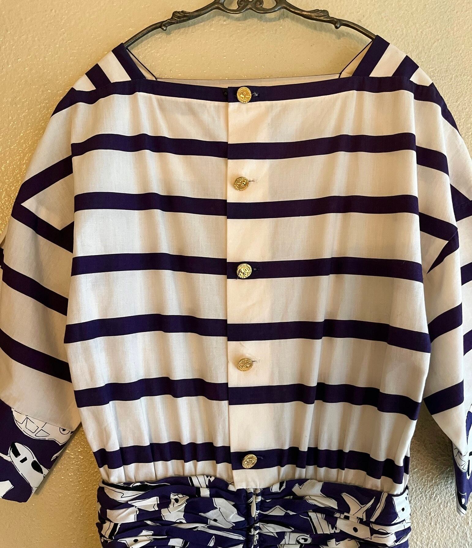 オフホワイトにパープルのボーダーがマリンテイストなCHANELの80-90’s vintageワンピース!
