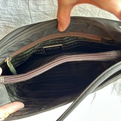グレイッシュなブラウンの色味が珍しいPRADAのナイロンショルダーハンドBag。肩にもかけられ、ハンドも使え、便利!