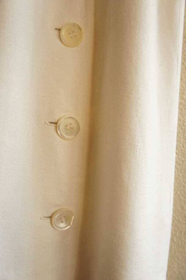 胸と裾の大きなシェルボタンの配置もアシンメトリーでユニーク。