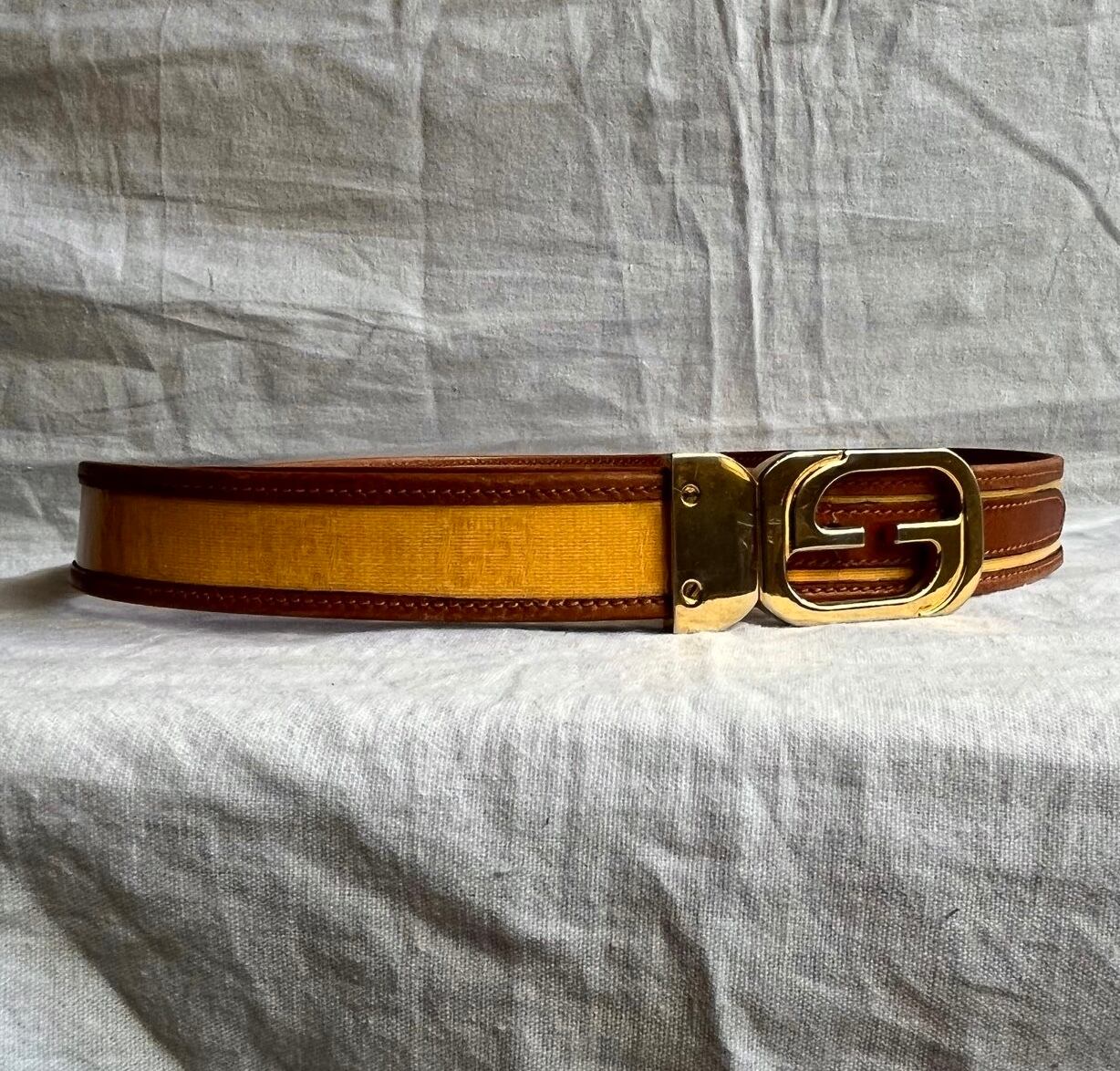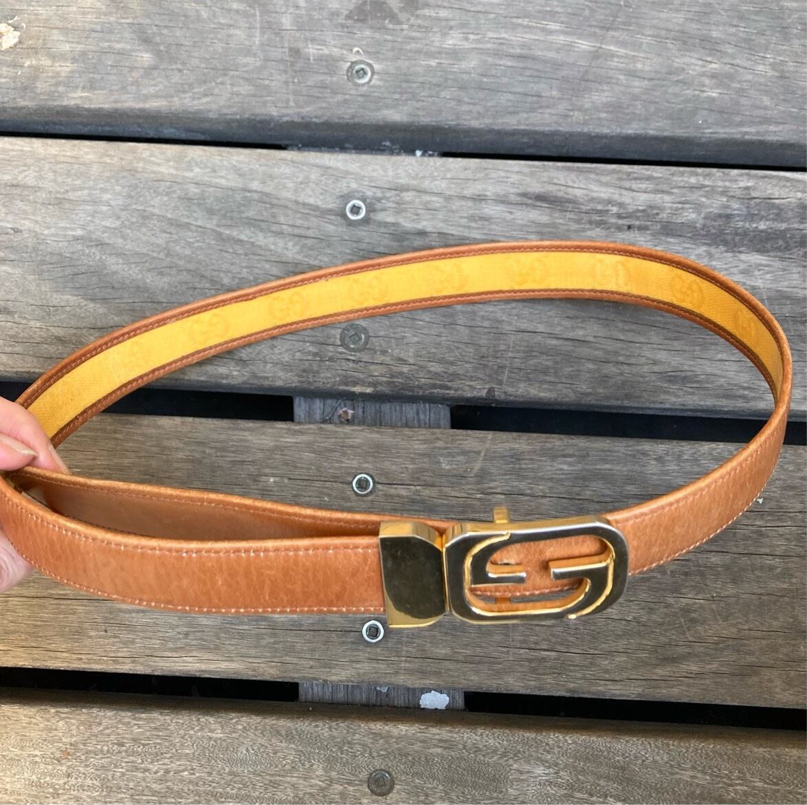 イエローとブラウンのバイカラーが美しい配色と、ライトブラウンのリバーシブルのGUCCIのベルト。イエロー地はGGの総柄になっていたり、バックルもさりげなくGGロゴでディテールまでこだわりを感じる一品です。
