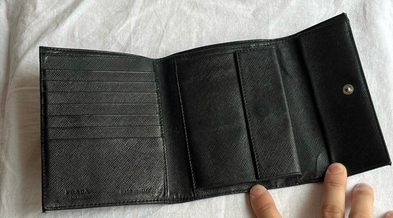 ナイロン地に三角タグがPRADAらしい折りたたみ財布。コンパクトならサイズ!