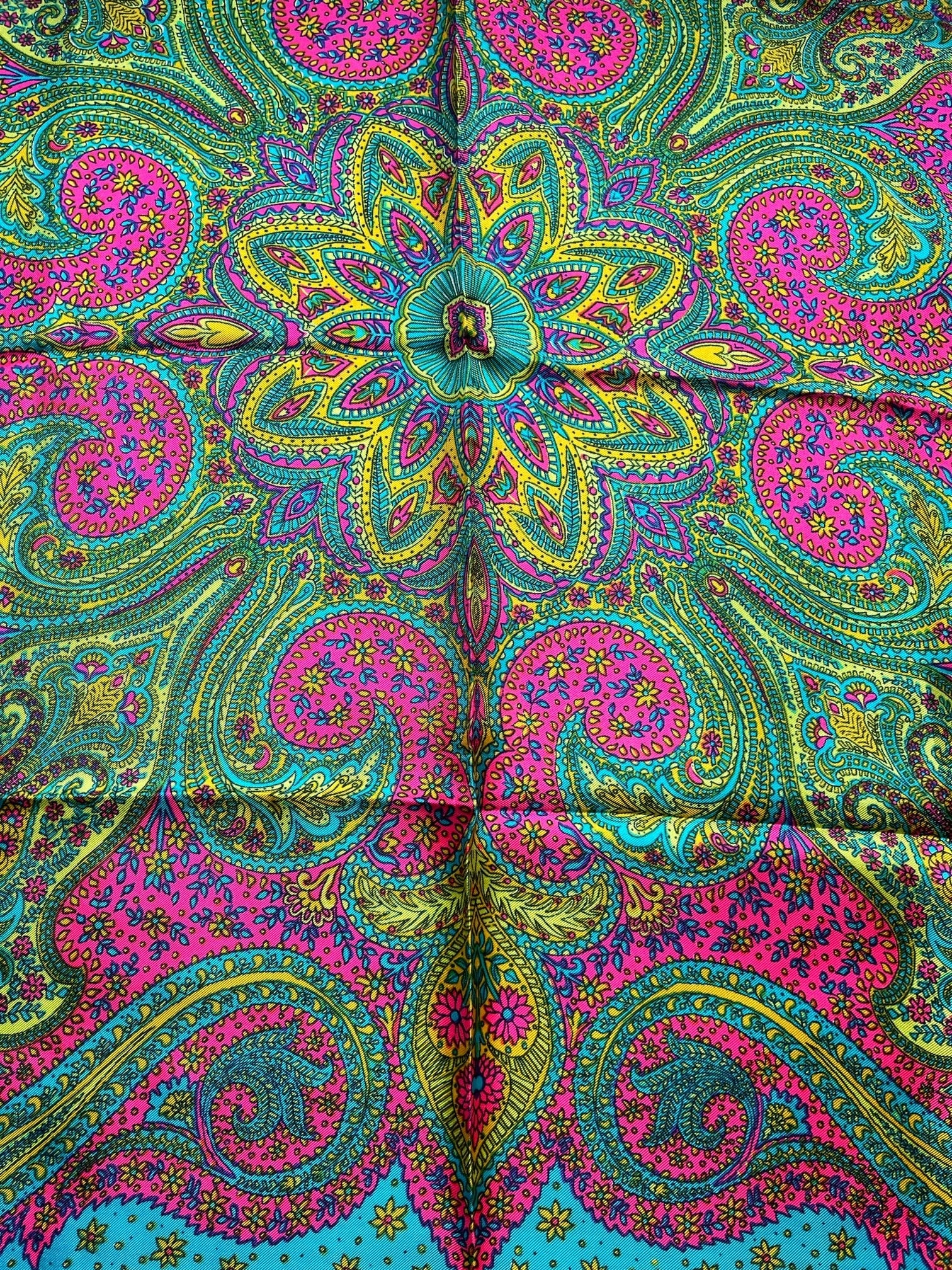 色鮮やかなペイズリー柄が目を引くデザイン。