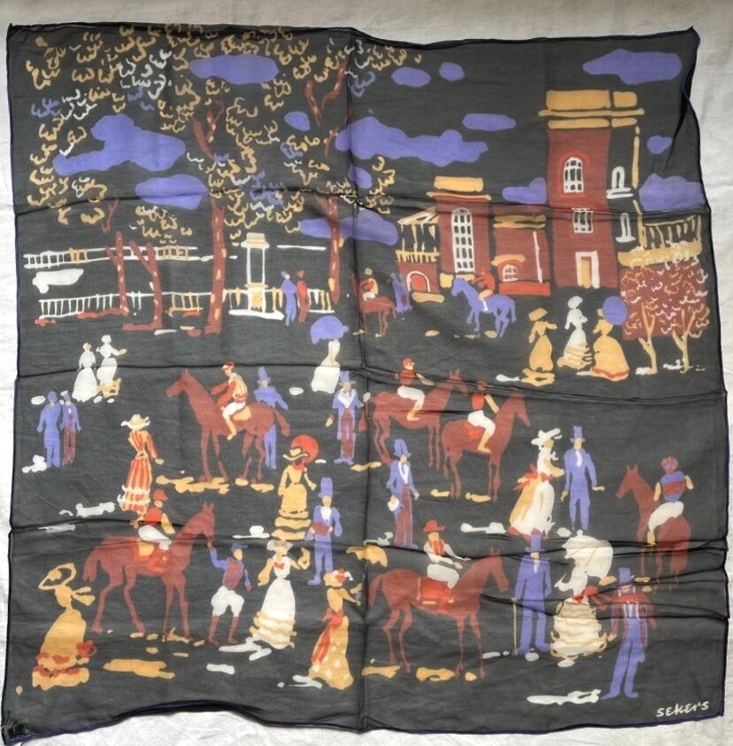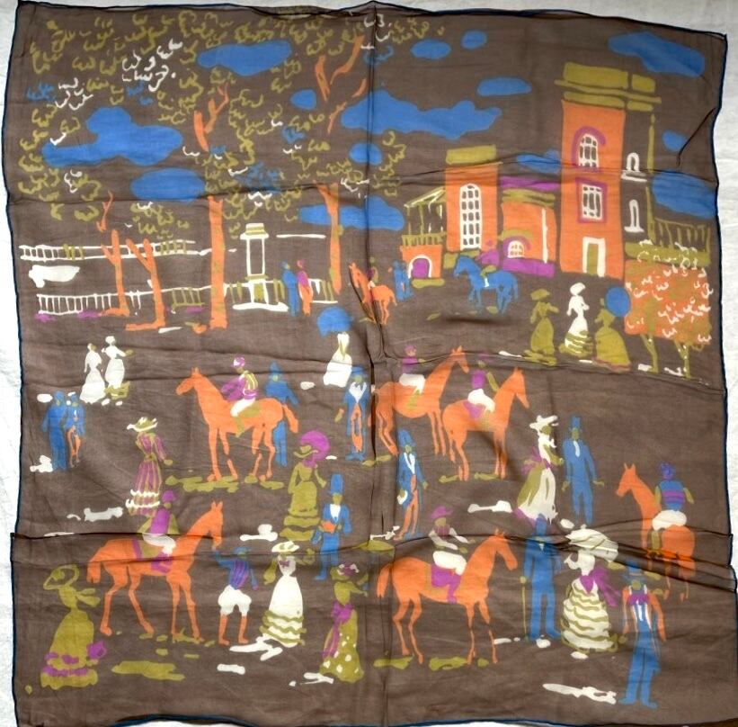 ECHO 60〜70’s Vintage スカーフ4枚セット!Deadstock☆☆シアー素材に街で暮らす人々の絵柄がユニークなデザイン。