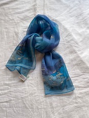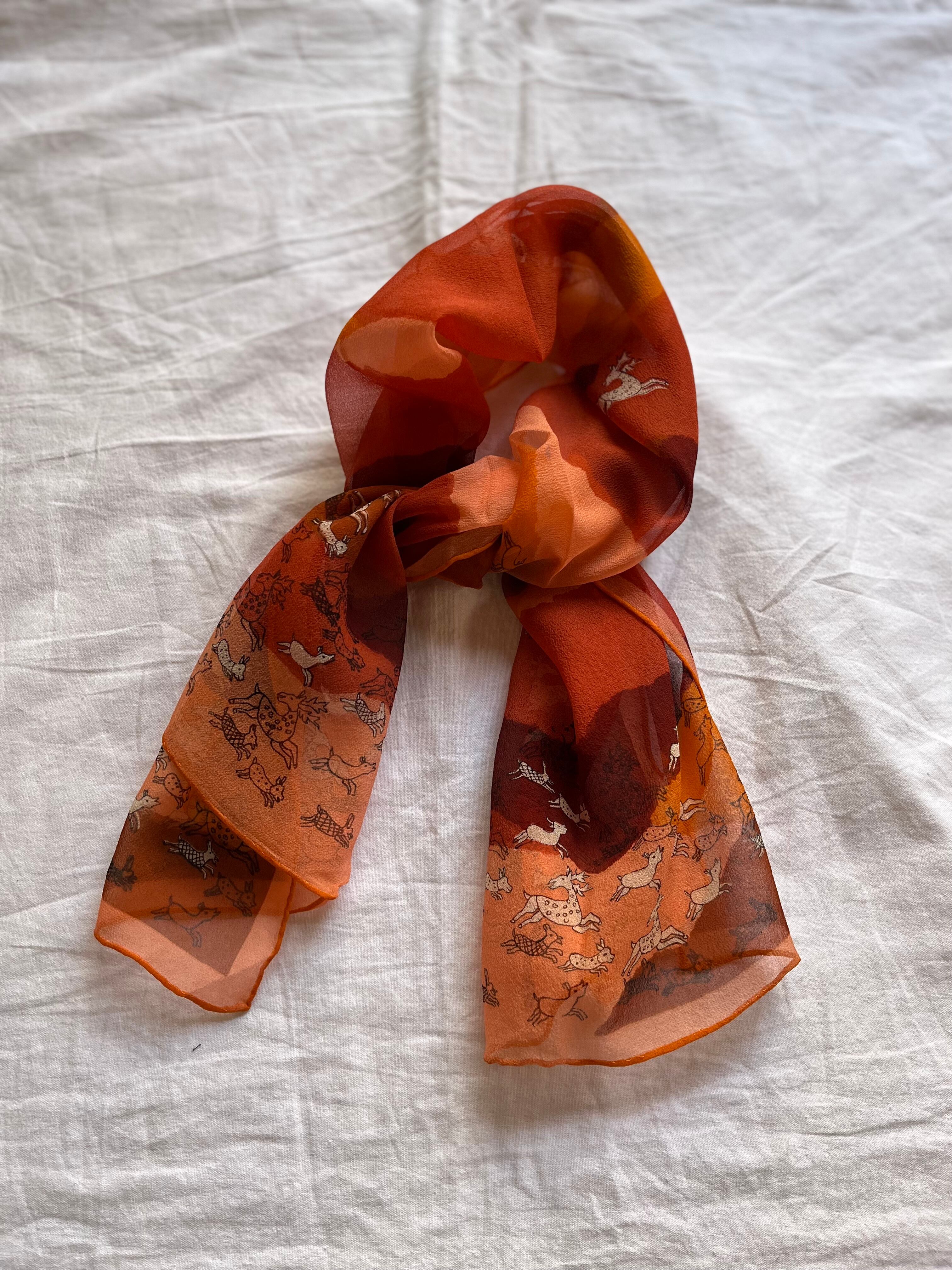 シアーな生地感に動物たちのイラストがcuteな細長スカーフ。