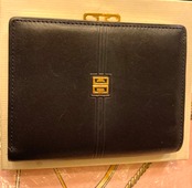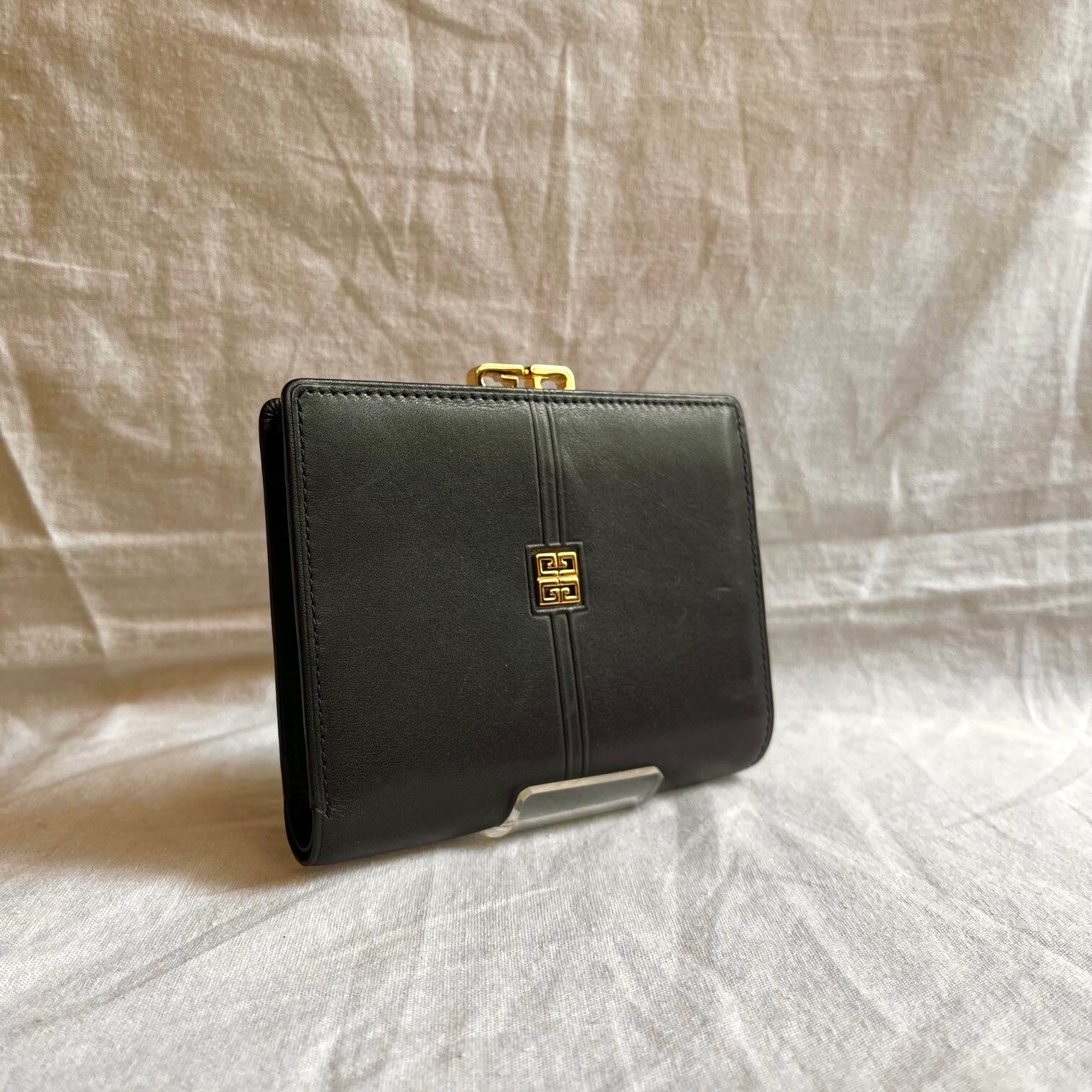 Dk.Navyのレザー地にゴールドのメタルモチーフが映えるGivenchy折りたたみ財布。柔らかい質感のレザーがハイクオリティな一品。がま口タイプでコインポケットも見やすく、機能的です。箱付きなのでギフトにもオススメ!