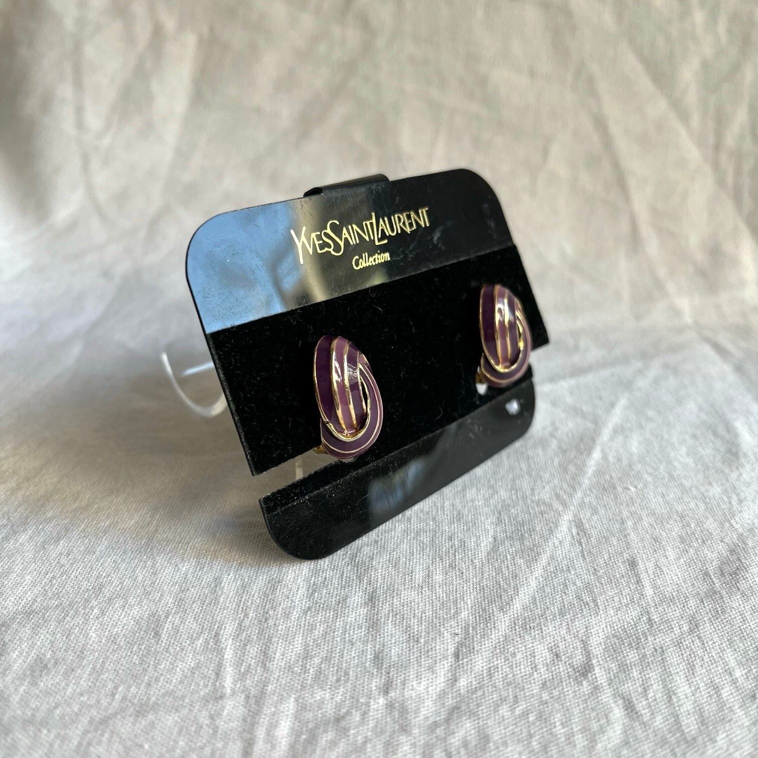 パープルのツイストデザインがモードなオーラを放つYSLのイヤリング。パープルはグラデーションカラーになっていて、抑揚のあるデザイン。ぷくっと立体的なモチーフが魅力の一品です。