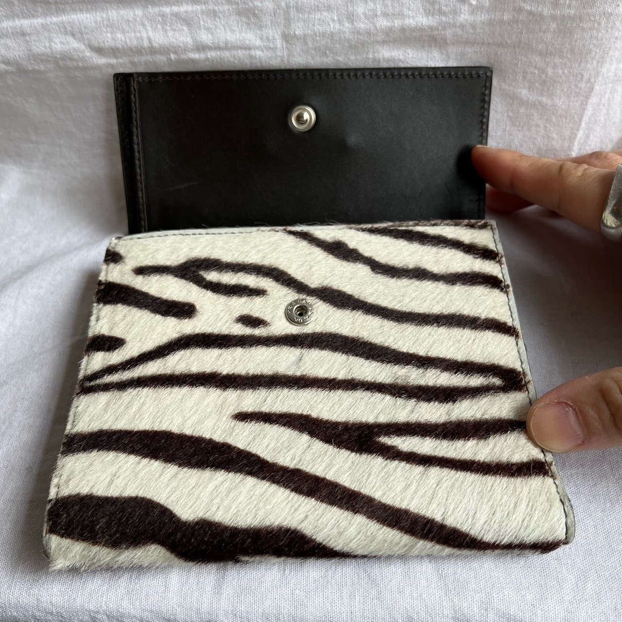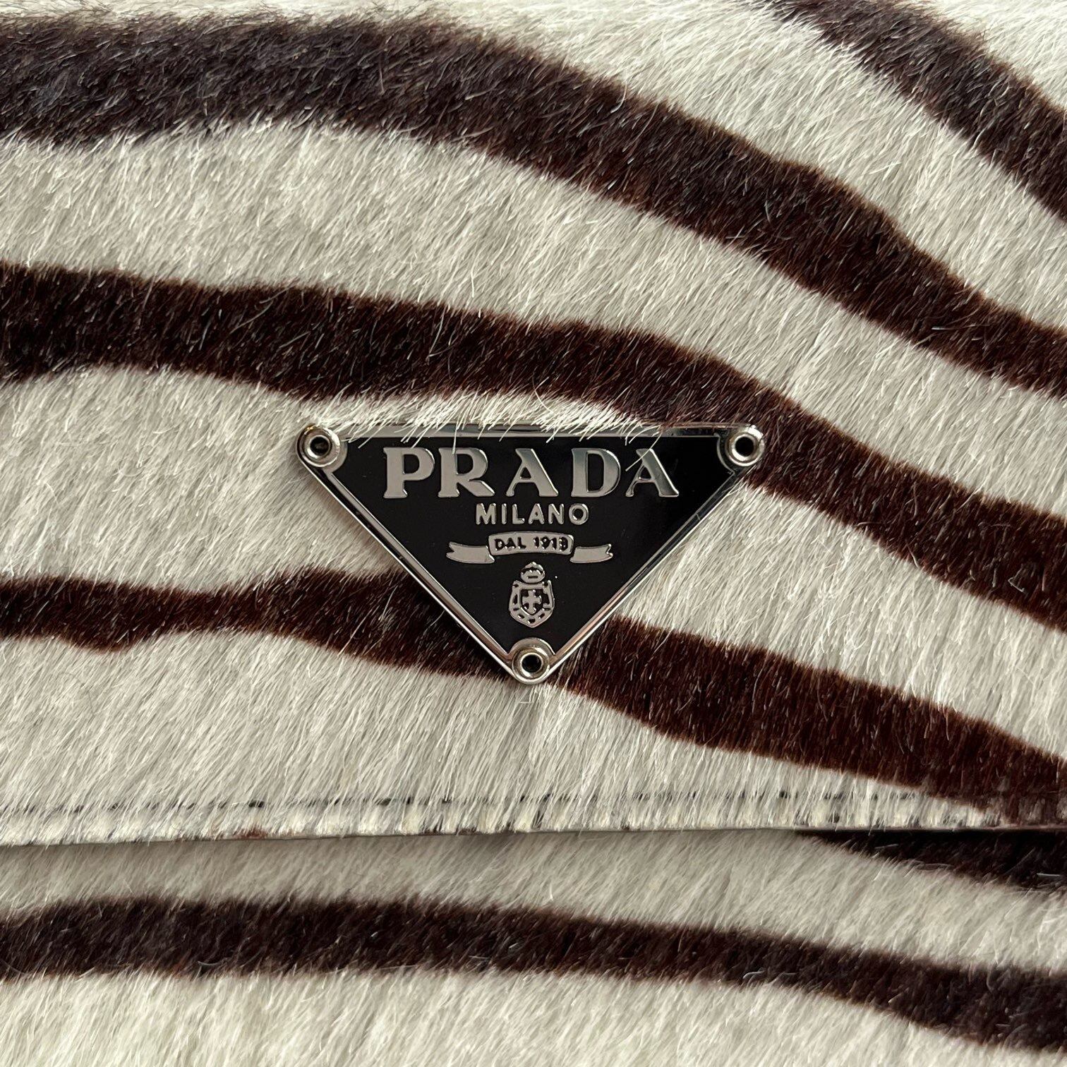 ハラコ素材のゼブラ柄がインパクトのある PRADAの折りたたみ財布。ハラコならではな起毛感がユニークな存在感☆