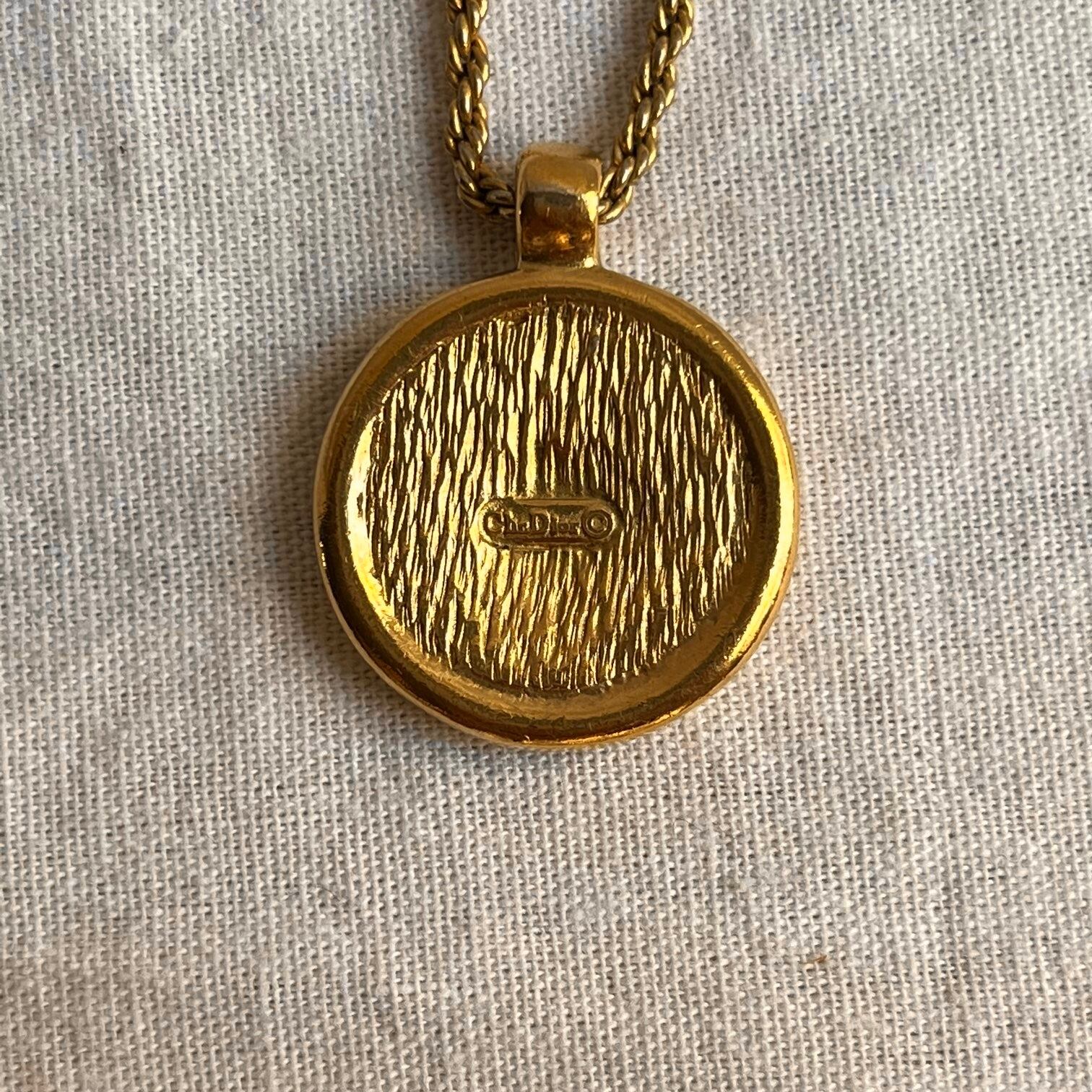 サークルにクラシカルなロゴが入ったDiorネックレス。