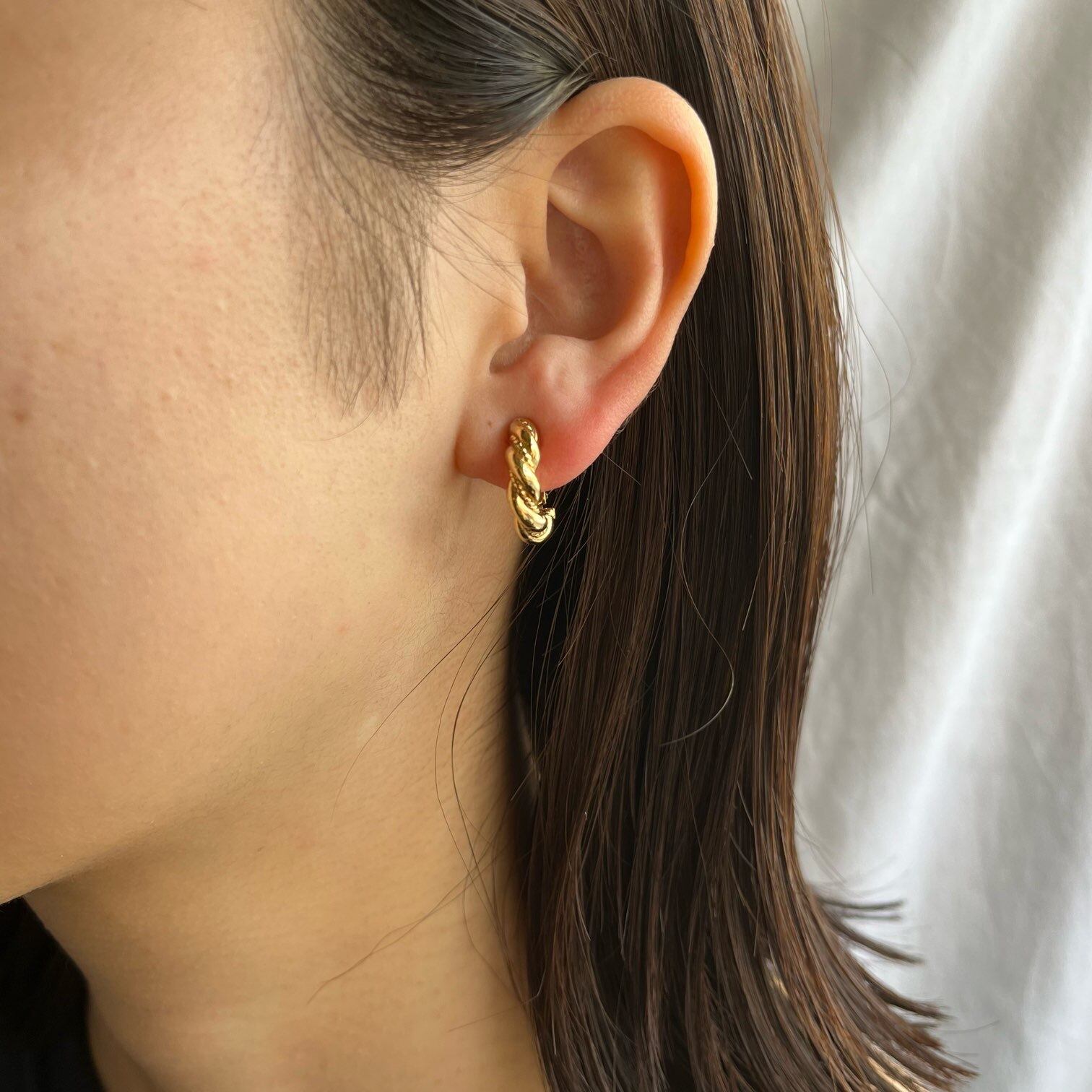ツイストフープがエレガントなDiorのイヤリング。小ぶりながらも存在感のあるデザインが目を惹きます。洗練されたゴールドがカジュアルにもフォーマルにも合う一品です。