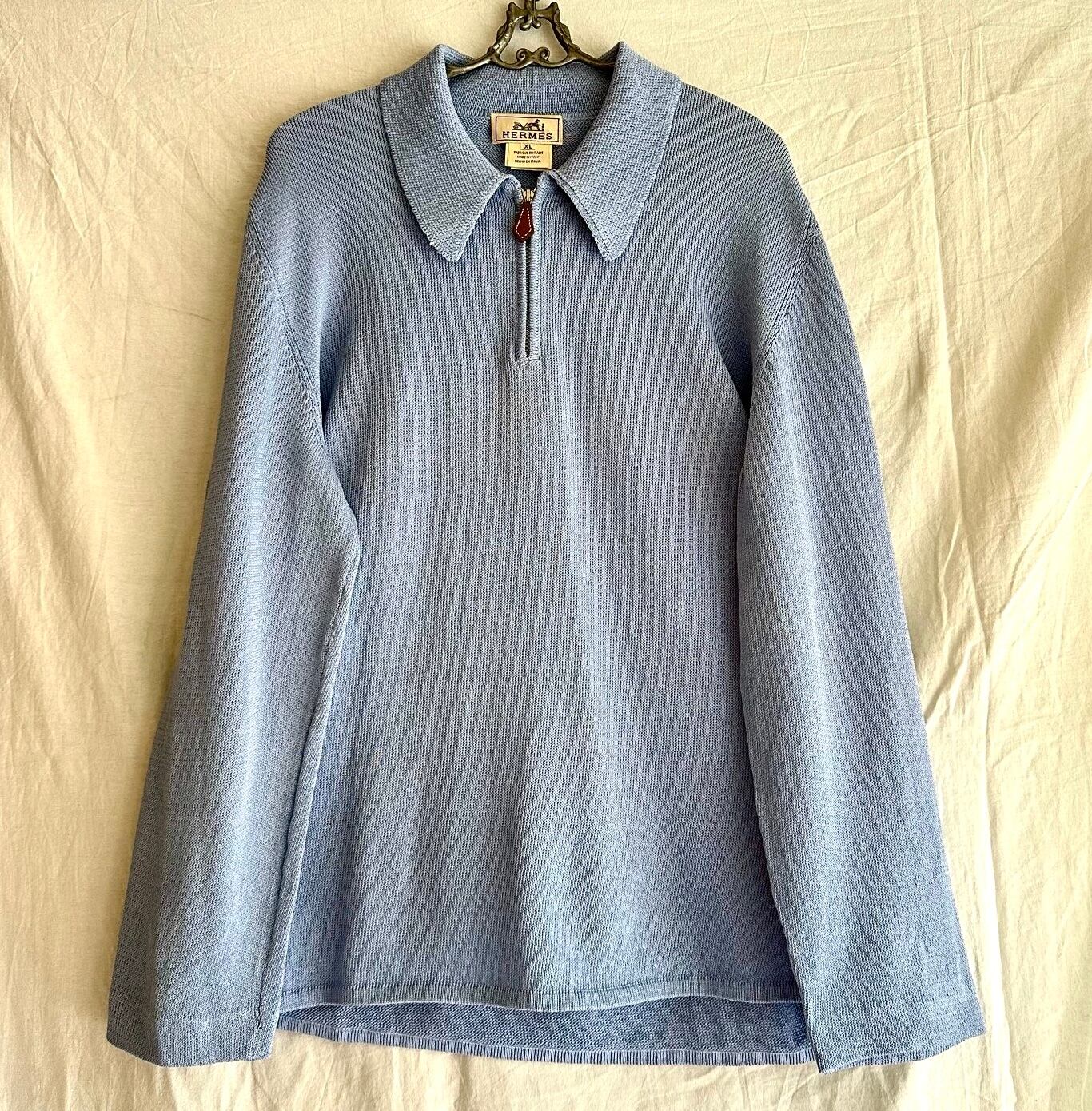 <men’s>HERMES "Lt.Purple" Half zip knit pullover Shirts