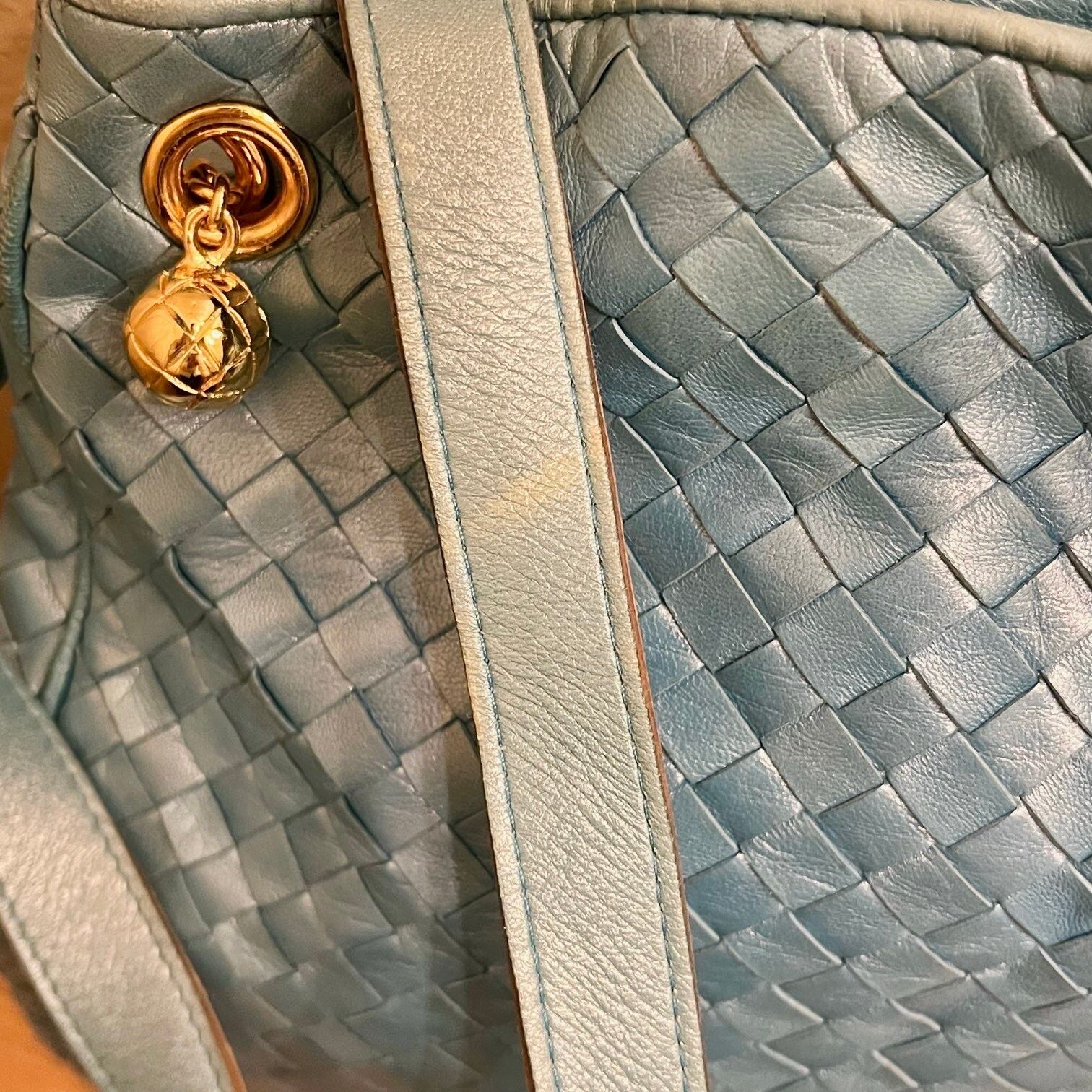 BOTTEGA "Pearl Blue Leather" Intrecciato Shoulder Bag