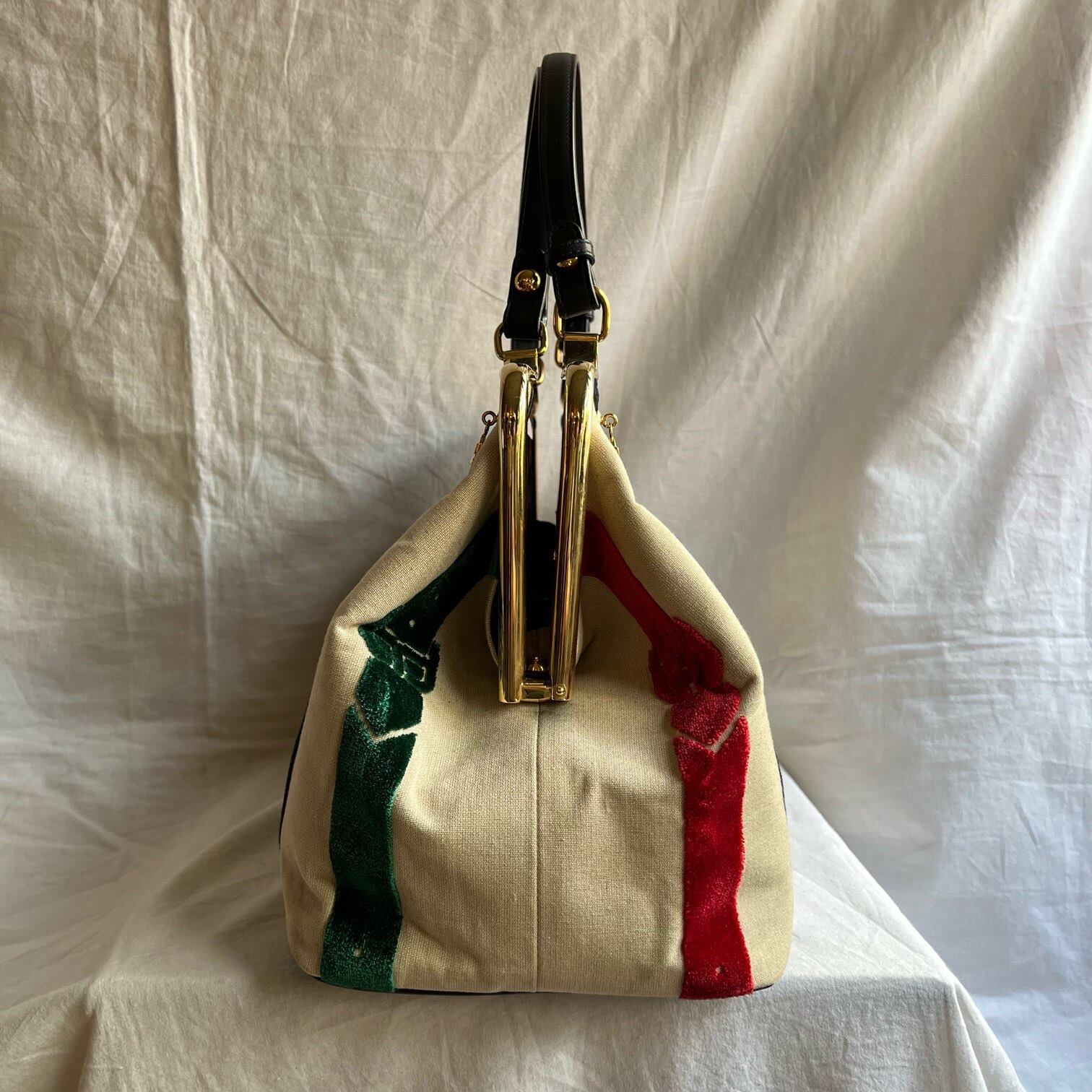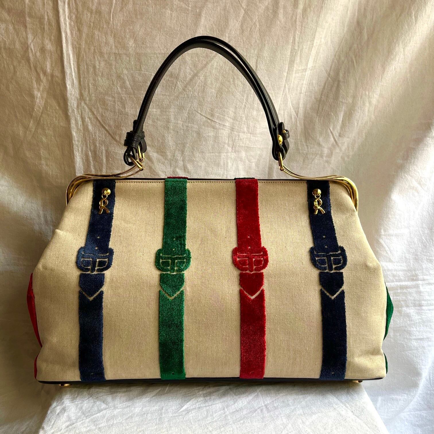 ROBERTA Multi Color "Canvas×Velour×Leather" Hand Bag