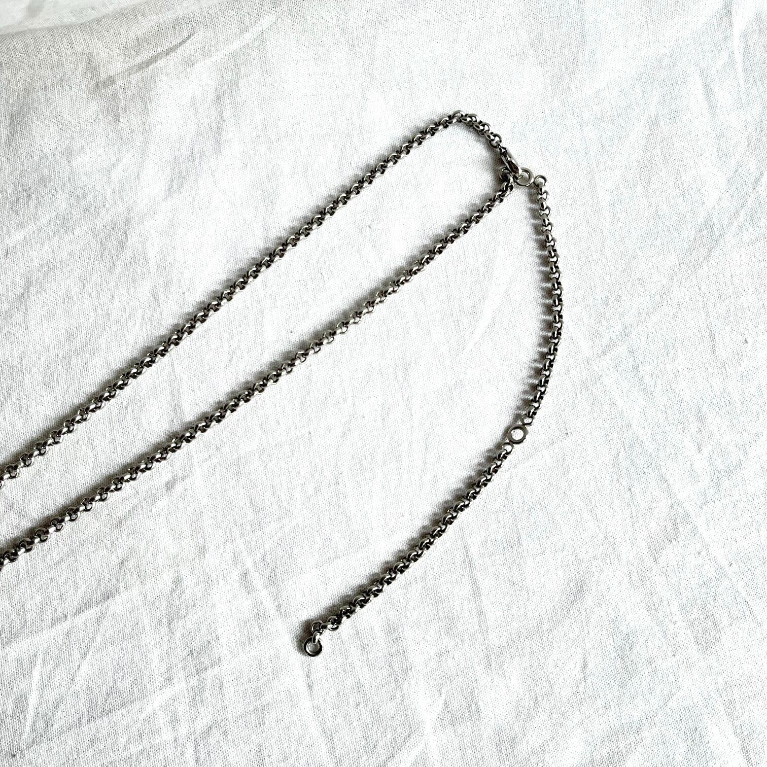 レザーとメタルの組み合わせが存在感放つdog tag HERMESネックレス。長さのあるチェーンは3段階調節可能で、シンプルでコーディネートに合わせやすいデザイン。N刻印がしっかりと刻まれ、HERMES SELLIERの型押しが遊び心あふれる1点。