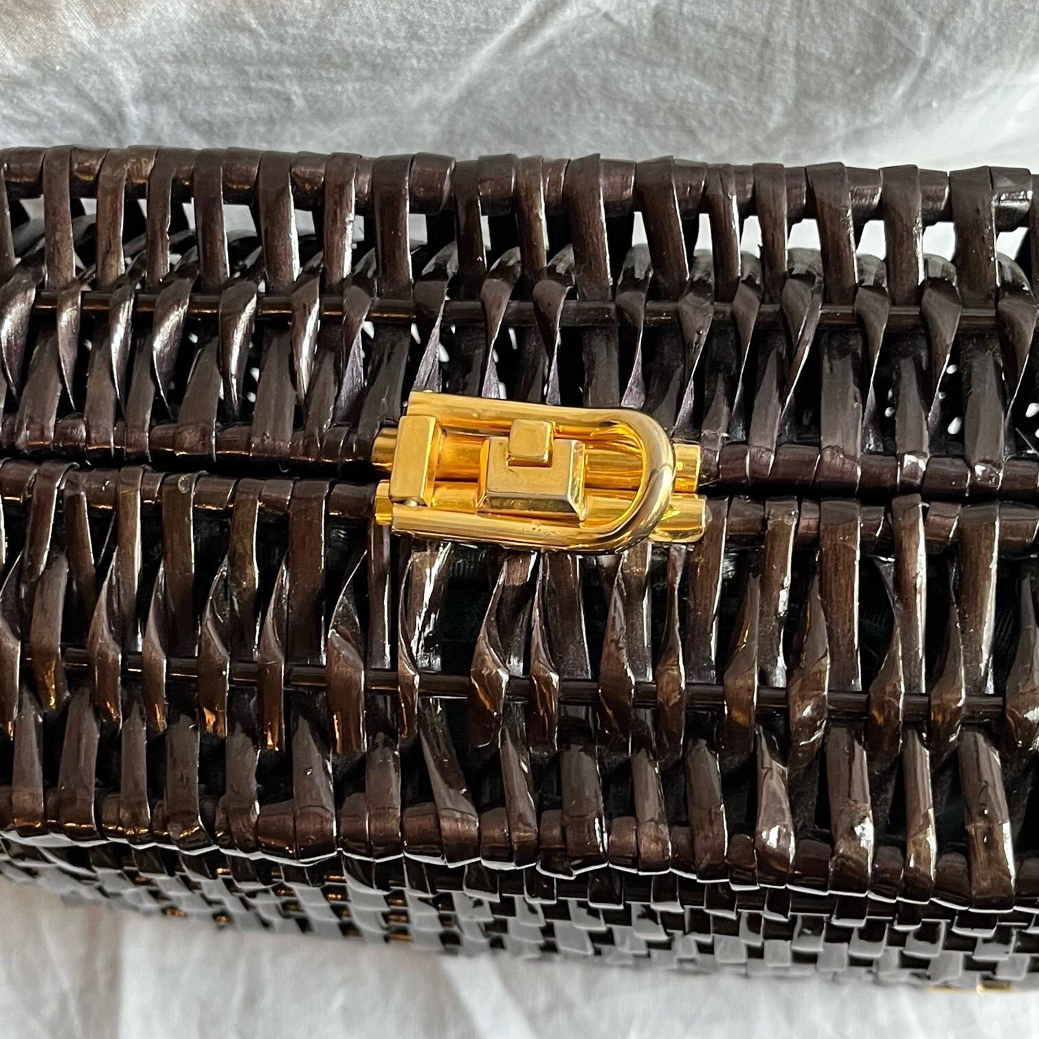 GRETA "Black×Navy" Rattan Shoulder Bag