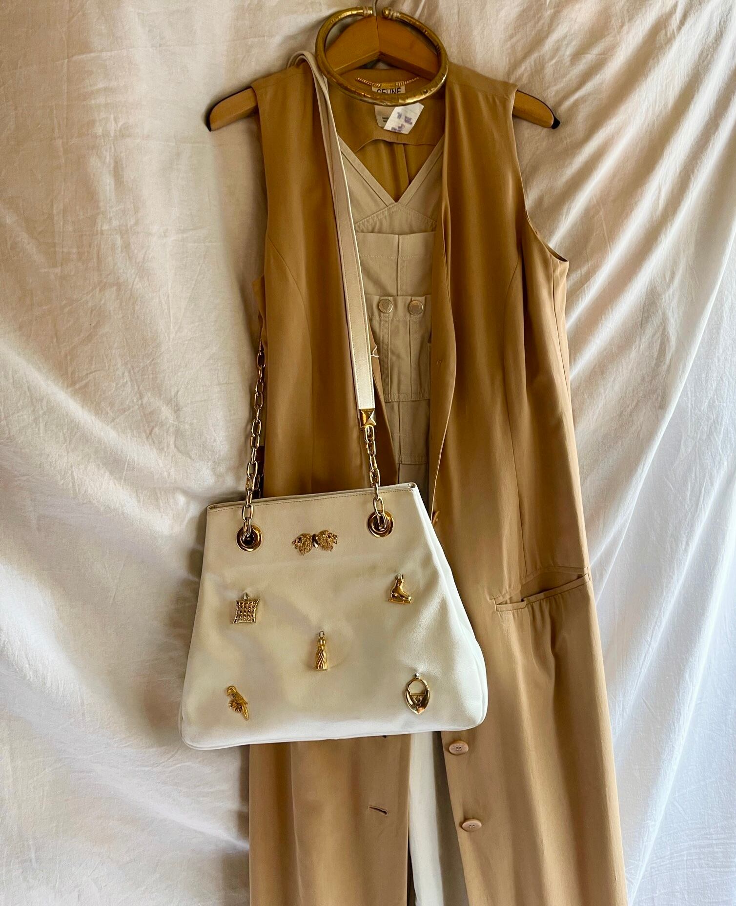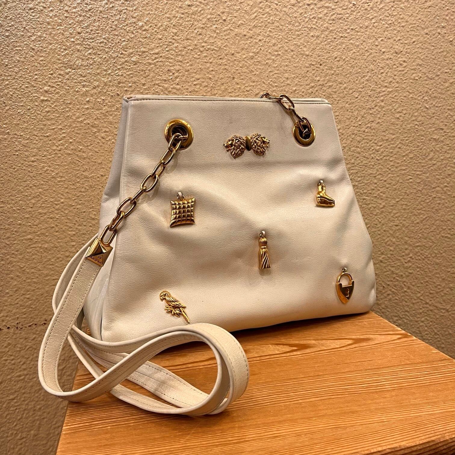 ホワイトレザーに様々なゴールドチャームがとってもキュートなFranceのMichel Orleanのショルダーバッグ。iPadも入れられる大容量で開け口も大きく開くので中が見やすいのもgood◎ぷっくりとしたチャームと太さのあるチェーンが潔いよい白に効いた唯一無二な1点☆