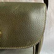 カーキレザーがシックなアイグナーのショルダーバッグ。しっかりとしたマットなカーキが上品でモードな印象。ゴールドカラーのアイグナーの”A”シンボルが正面、ベルト部分にもさりげなくはいっています。