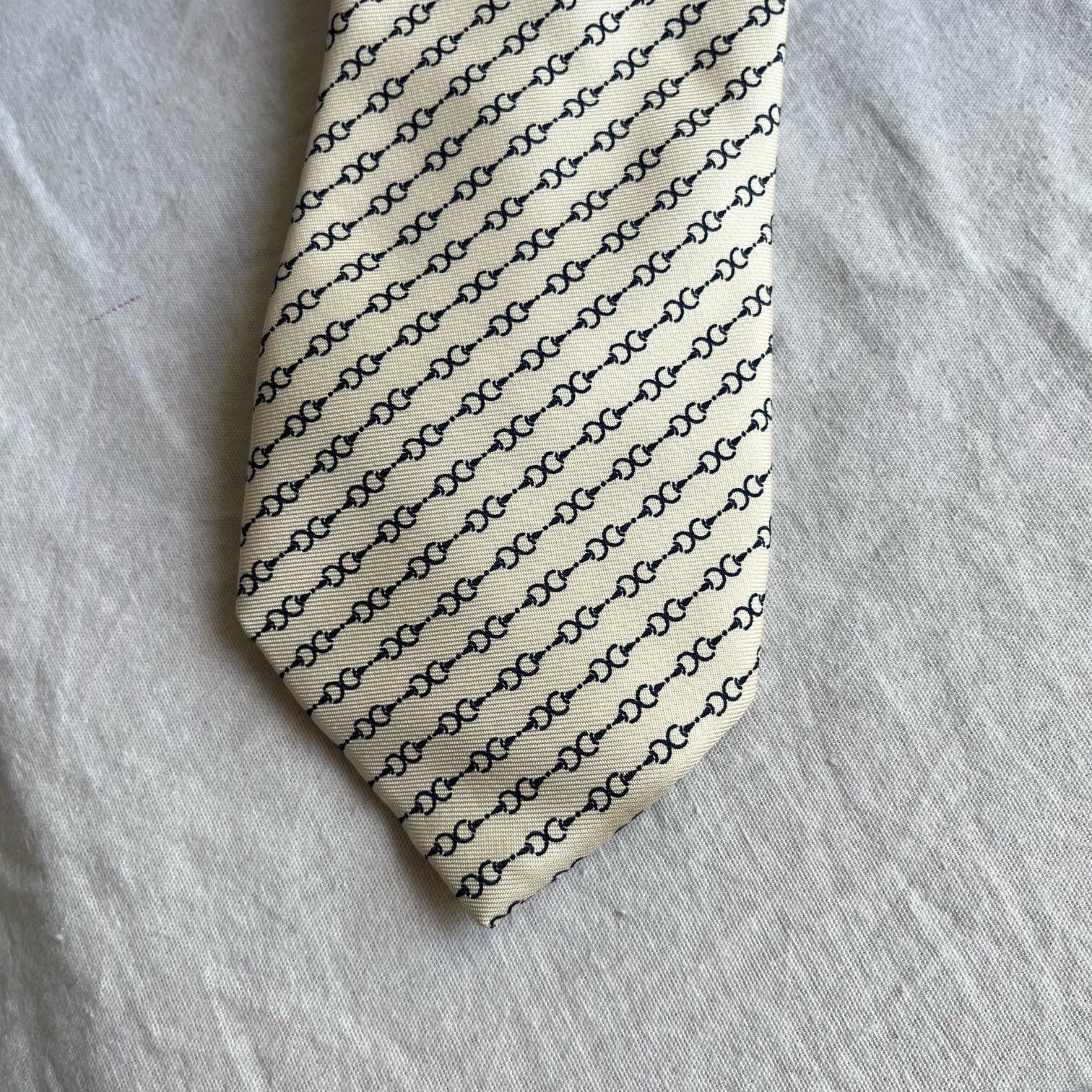 CELINE “Bit Chain” “White×Navy” Silk Tie