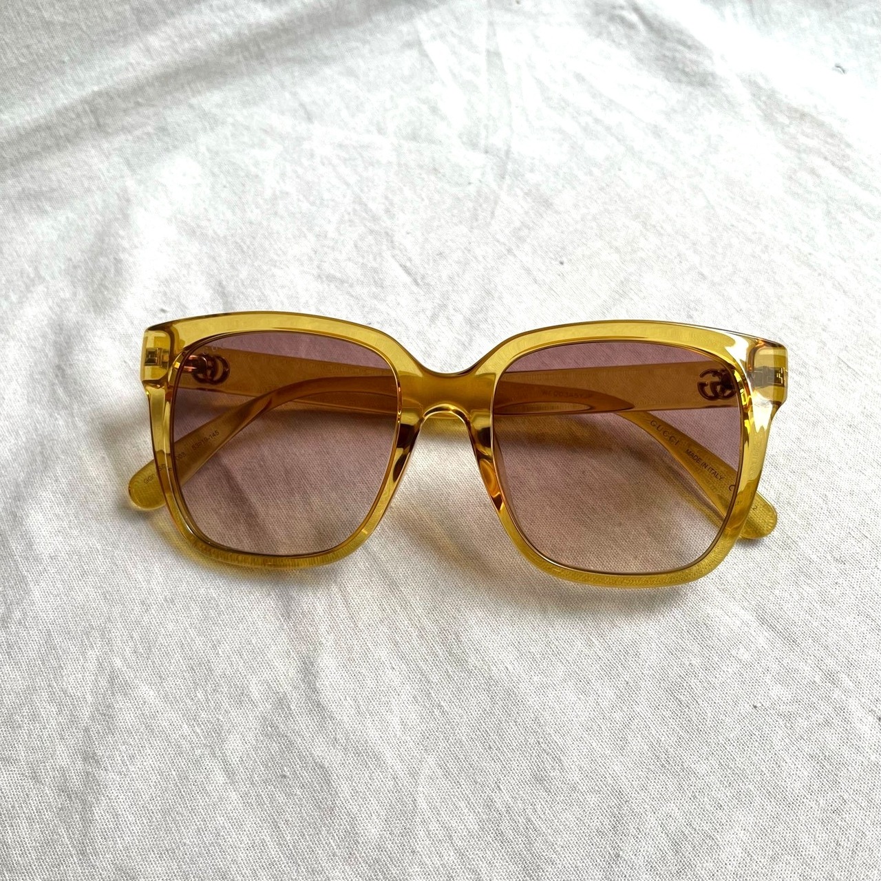 柔らかいブラウンイエローのクリアフレームが上品で美しいDeadstock!GUCCIサングラス。