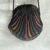 シックな落ち着いたカラービーズが貝殻状に施されたU.S.ビーズショルダーバッグ。少しぷっくりと立体感のあるビーズの並びが繊細で芸術的な1点☆輪っかになったフリンジが持つたび揺れるのがキュート!内側にポケットもありファスナーも付いているので安心な使い心地なのも◎