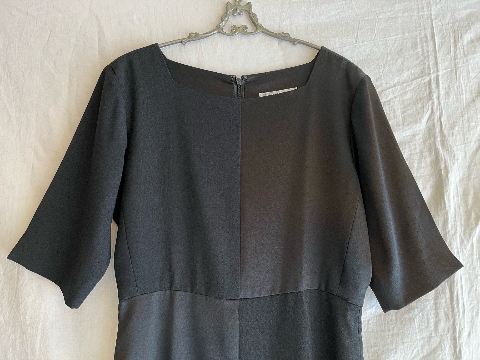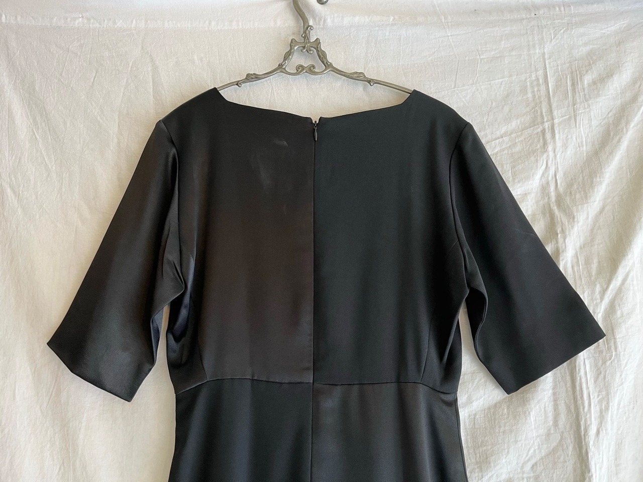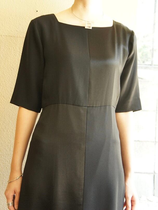 ブラックの光沢感ある生地とマットな生地が十字柄で配色されているシックなYSL 90’s ドレス!