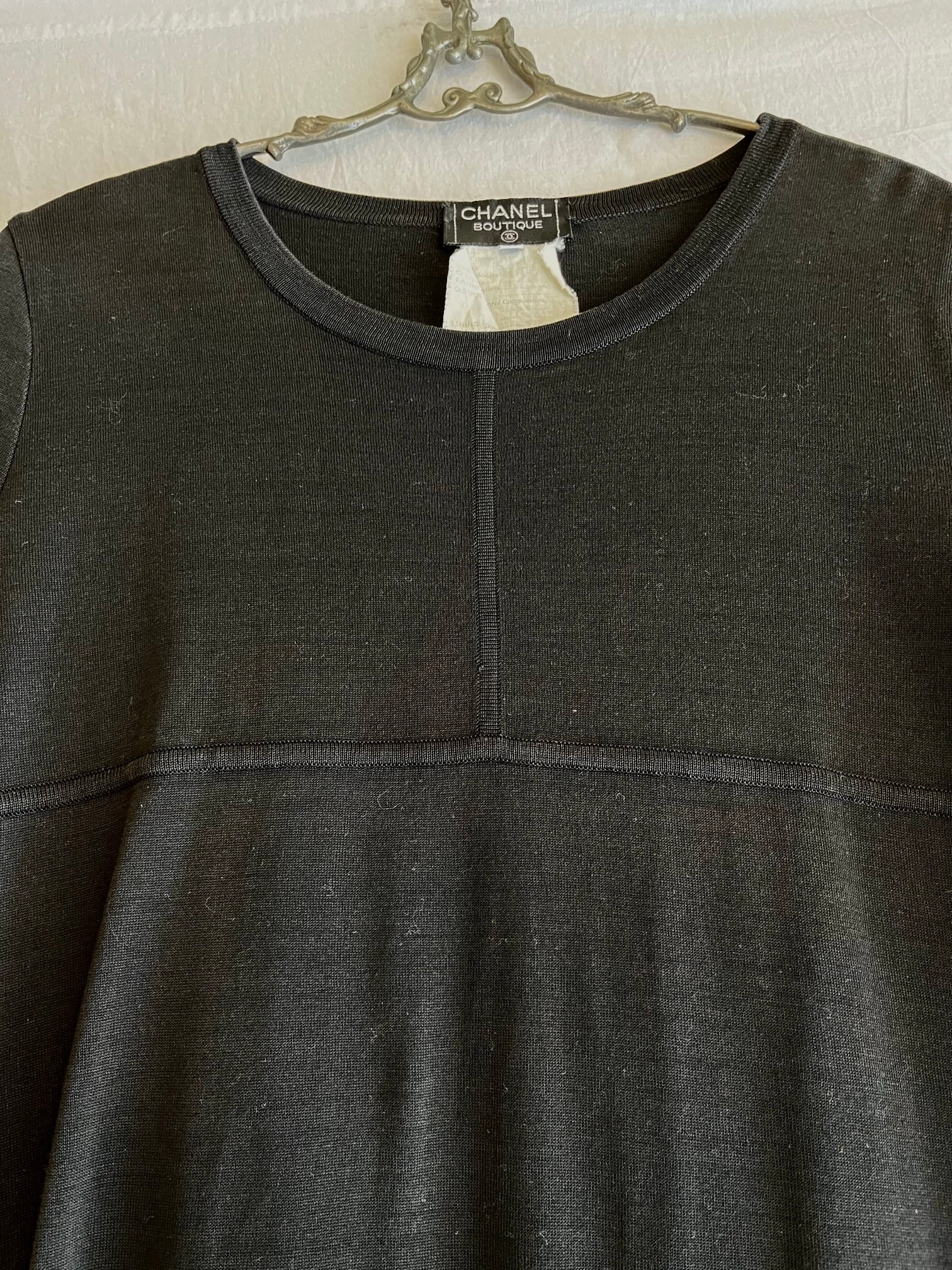 少し透け感のあるブラックカラーが高級感を放つCHANELのニットトップス!