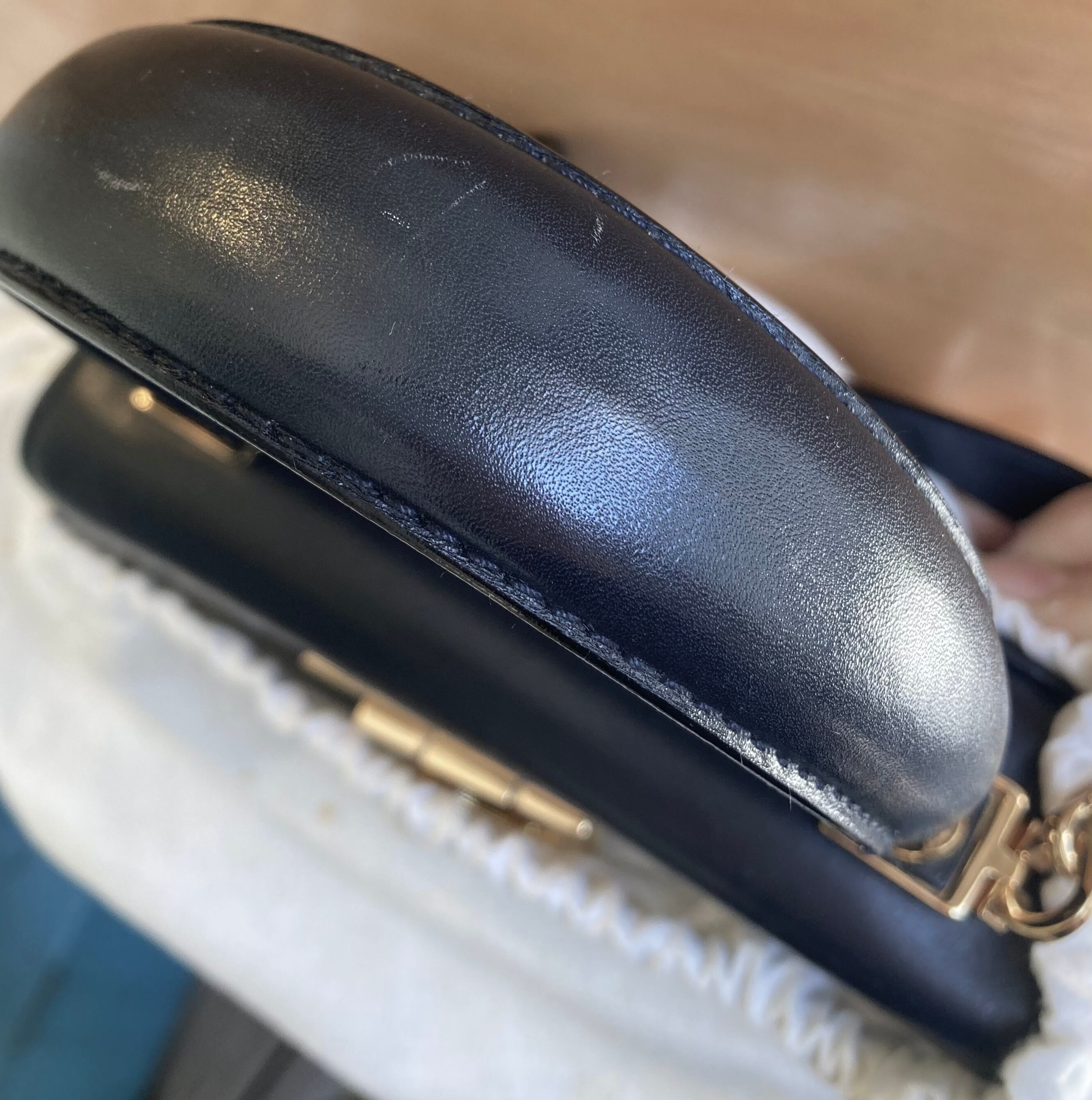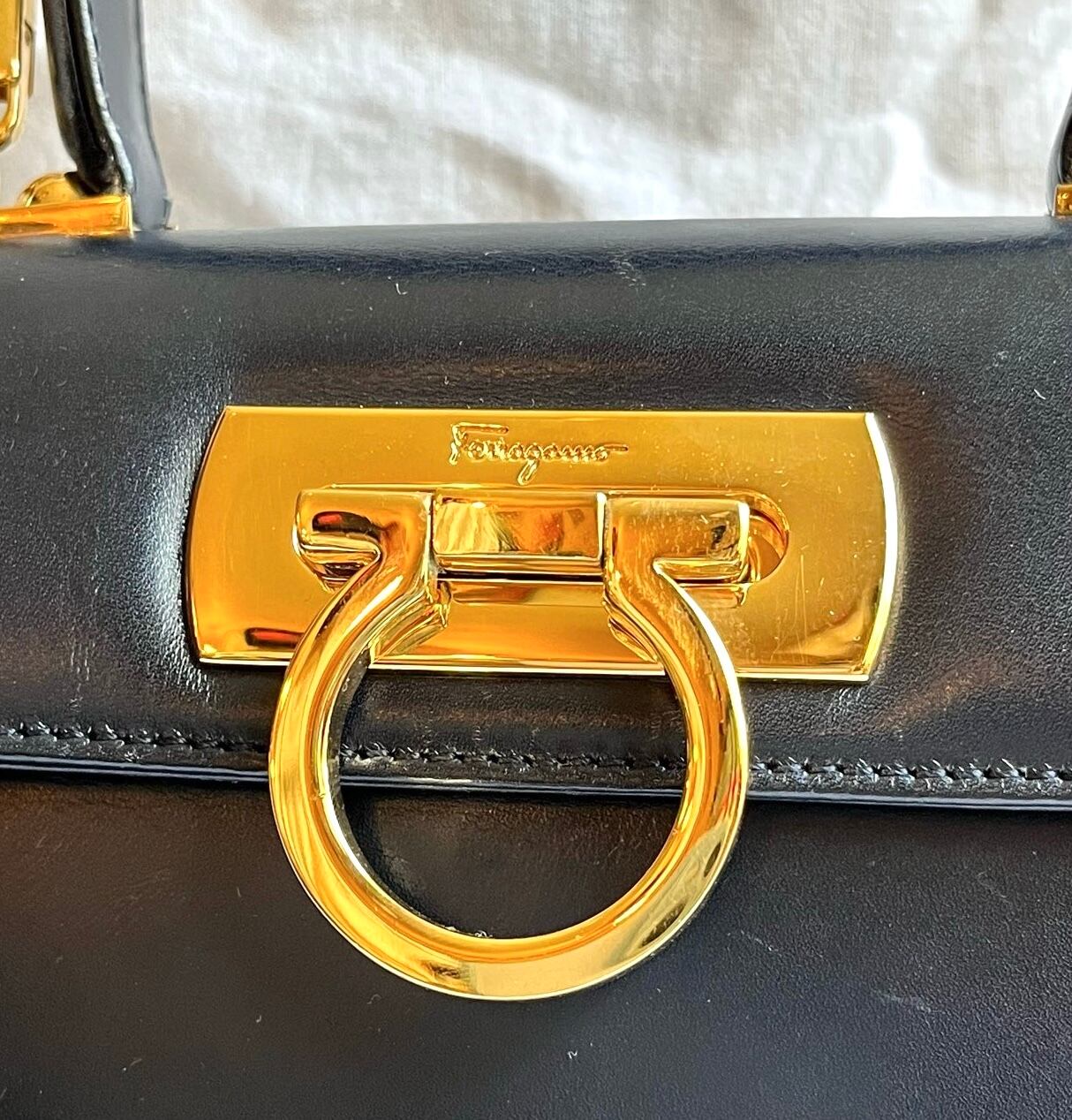 レアなネイビーレザーにゴールドのガンチーニが映えるFERRAGAMO 2way Bag!