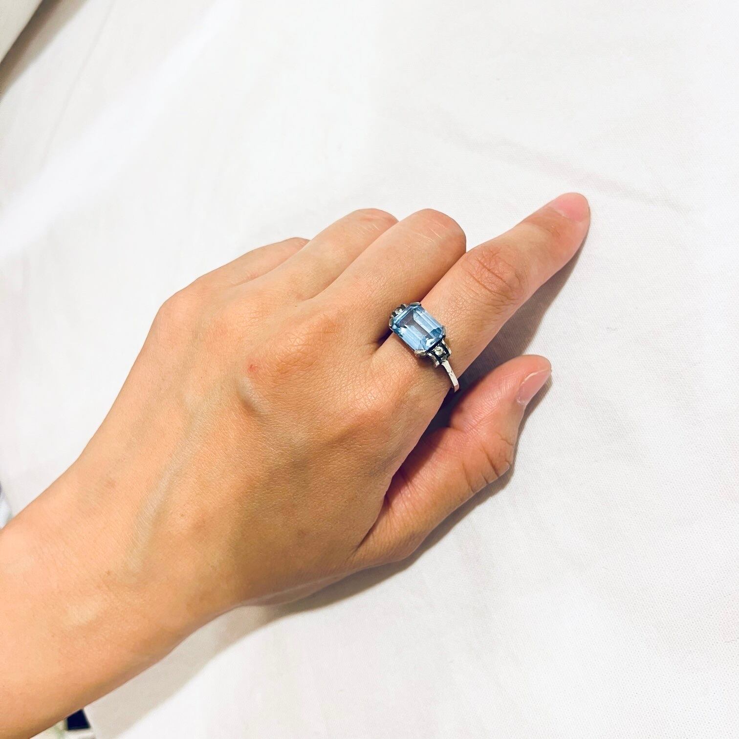 ライトブルーが輝くFrance1930's silverリング。