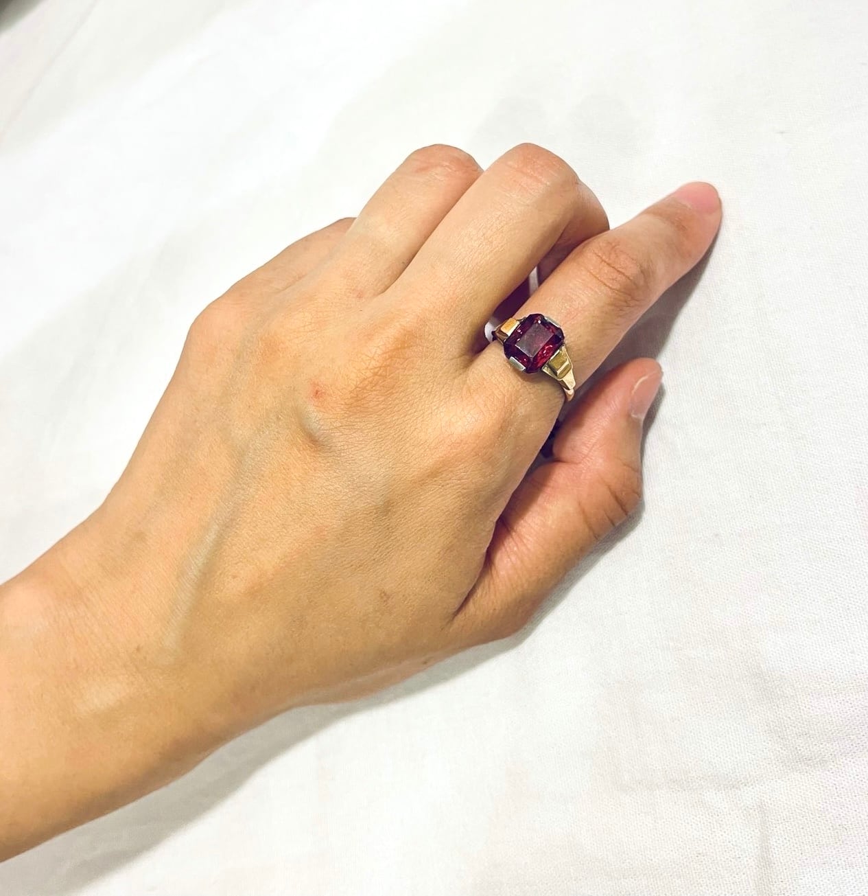 #04 France 1920’s~40’s Plaque or “Red stone” Gold Ring-deadstock -