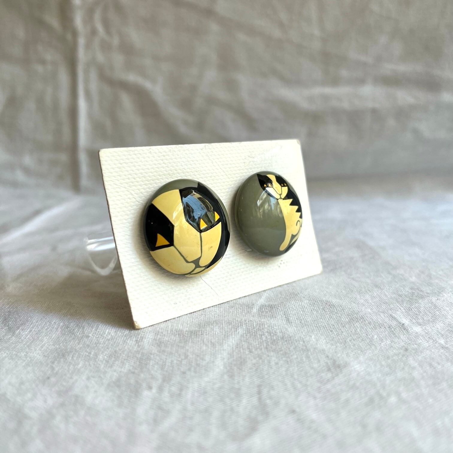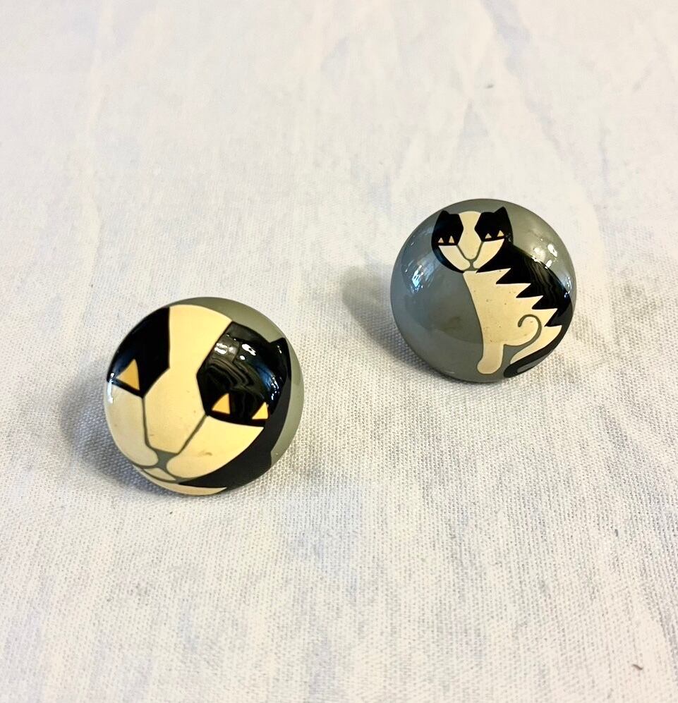 Marie-Christine PAVONE 1920-30’s “Hand Paint” “Cat” Earclips