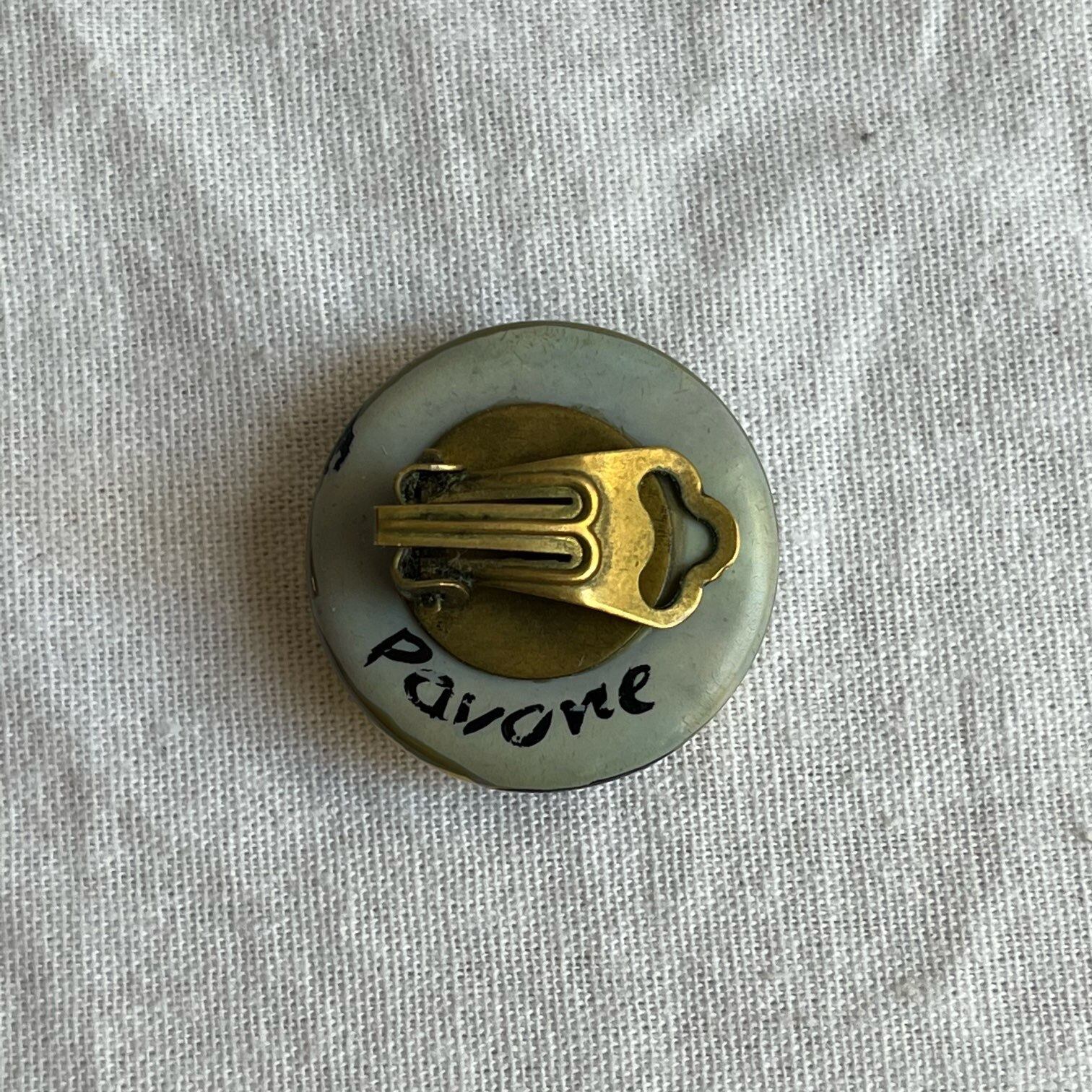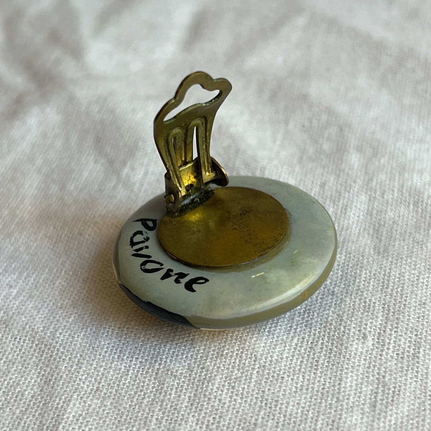 Franceのジュエリーアーティスト、Marie-Christine PAVONの1920-30’sのアート作品!左右違ったデザインのアシンメトリーなハンドペイントEarclip、激レア!!