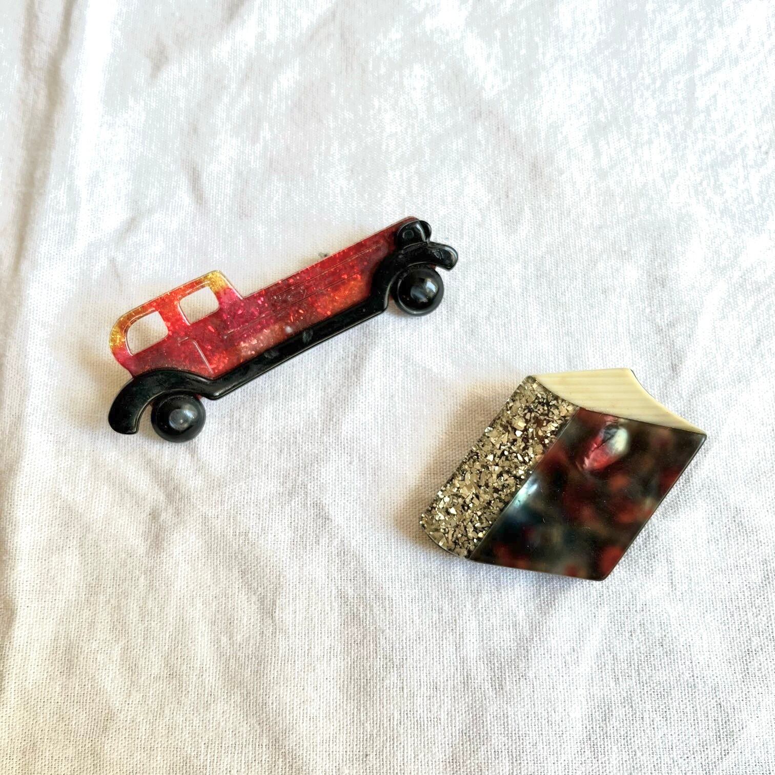 フランスのジュエリーデザイナー”Leastain”の作品( 1969’s~1981’s )cellulose ブローチ, 激レア。