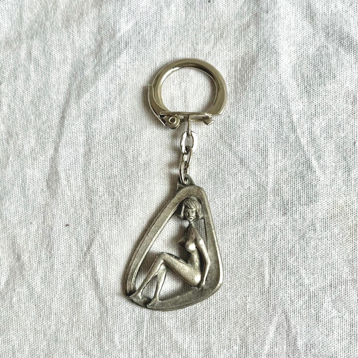 女性の美しいシルエットがセクシーな1960'sフランスメタルキーホルダー、前も後ろも。。!!