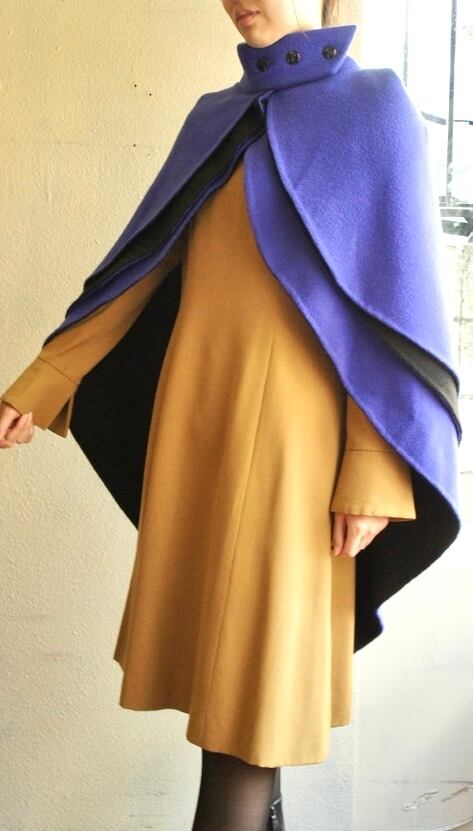 3層の重なった優雅な曲線のPierre Cardin60-70’sケープ コート、激レア!