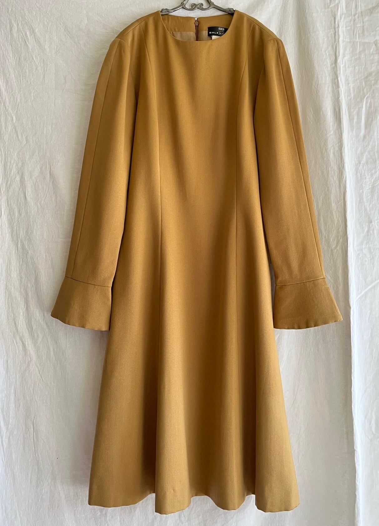 ゆるやかなプリンセスラインのシルエットが上品なBALENCIAGA 80-90’s vintage ワンピース。シンプルなデザインながらも広がった長めの袖口が、流石のバレンシアガのモード感!