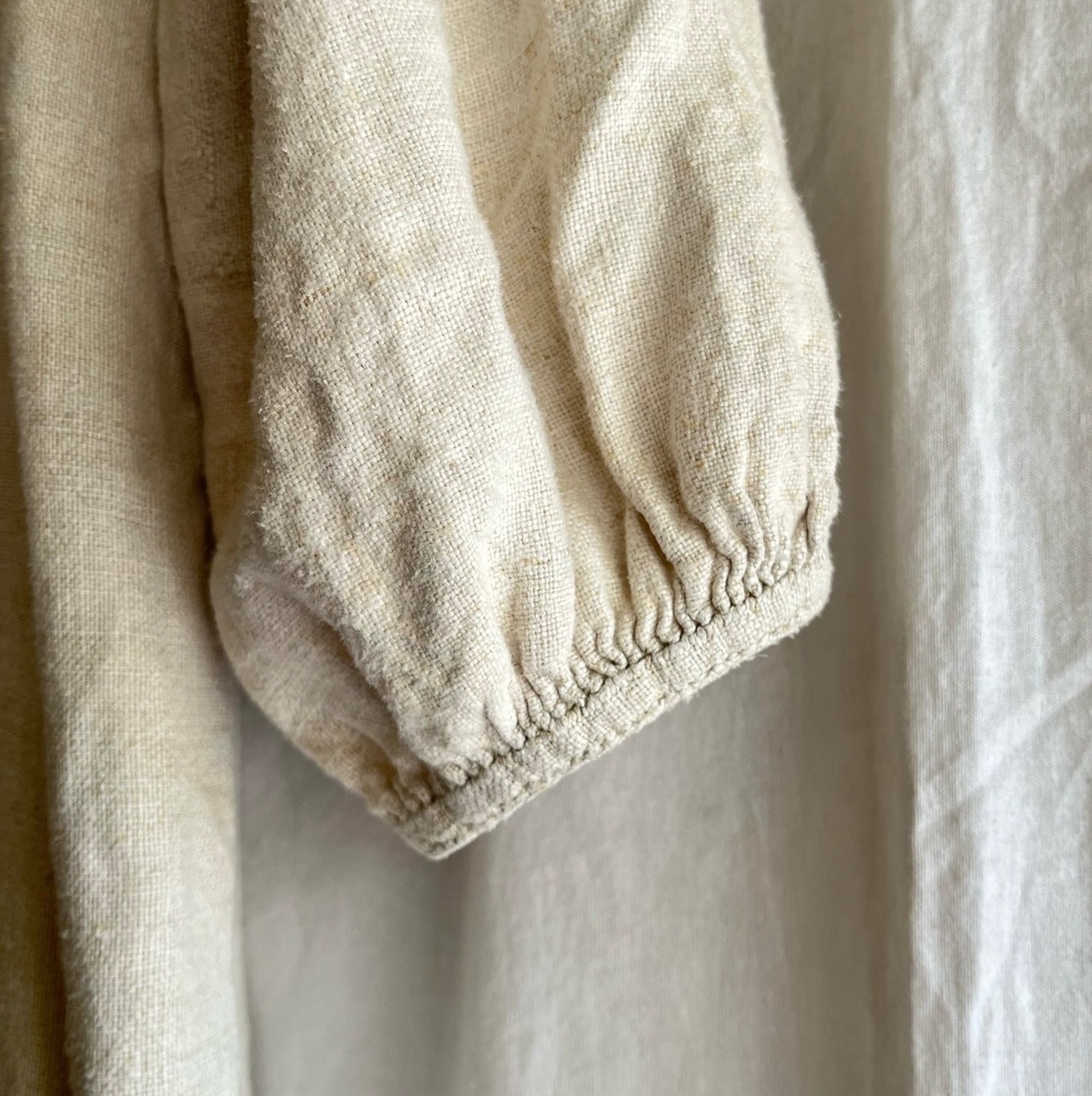 襟元や袖などのとても細かいピンタックに、くったりした生地がバランスの良いAラインのマキシ丈、とても美しいシルエットです。