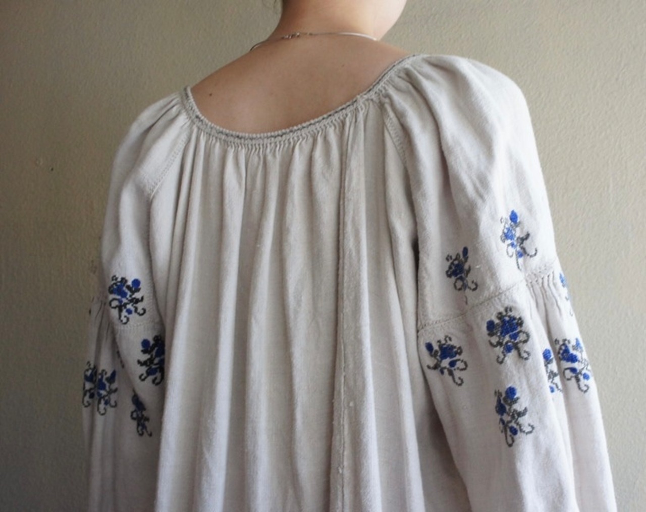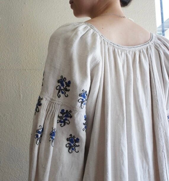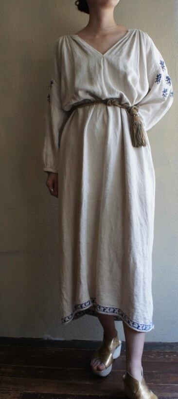 ウクライナの伝統的な刺繍か施された民族衣装の1930-40’sアンティークワンピース、Handmade.