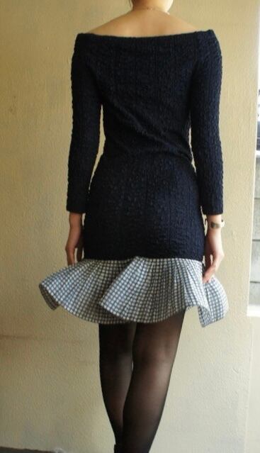 タイトなワッフル生地にドットのチュールの組み合わせがなんともキュートなPierre Cardin 60-70’s マーメードドレス☆レア!